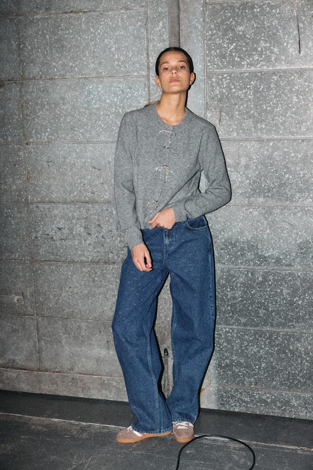 Noisy May Nmbrayana L/S Bow Trim Knit Cardigan Farbe: 4903272 Ultimate Grey Sequin Bow