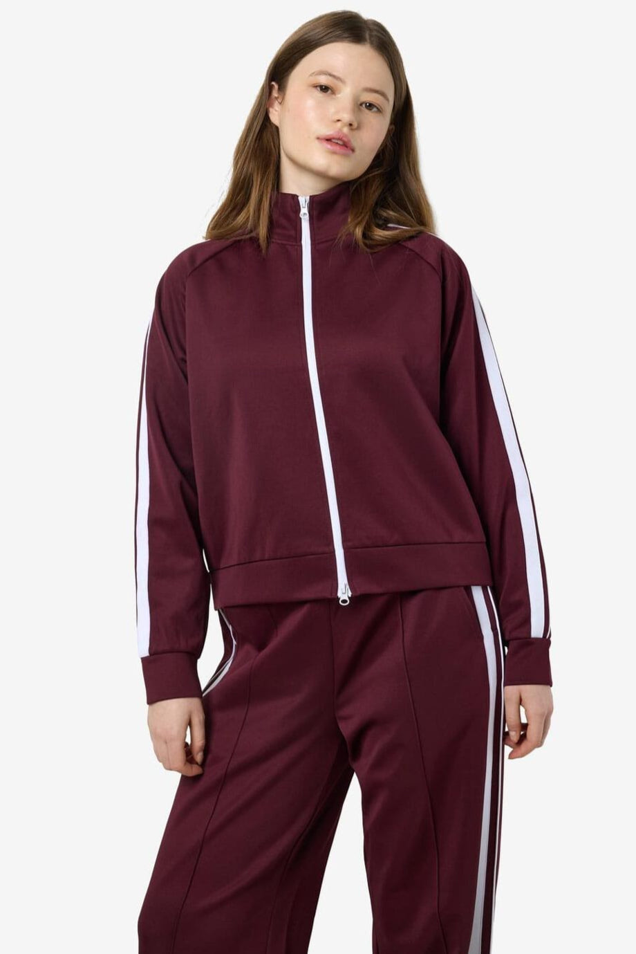 Noisy May Nmjenna L/S High Neck Zipper Farbe: 4837290 Windsor Wine White Stripes