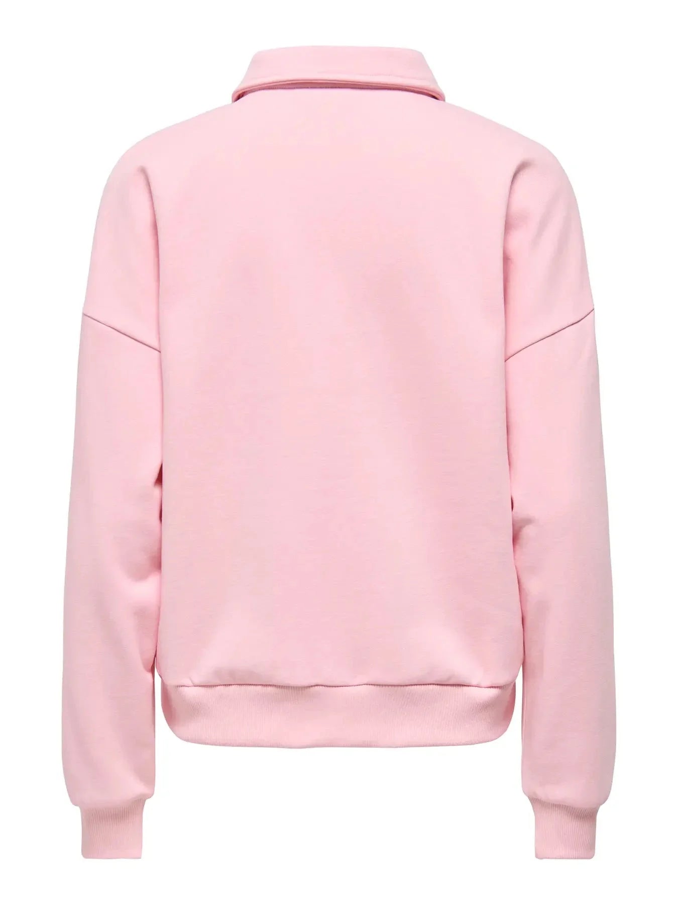 Rosa Sweatshirt von Only mit Polokragen und langen Ärmeln. Das Sweatshirt hat drei dekorative Knöpfe in hellem Gold auf der Vorderseite.