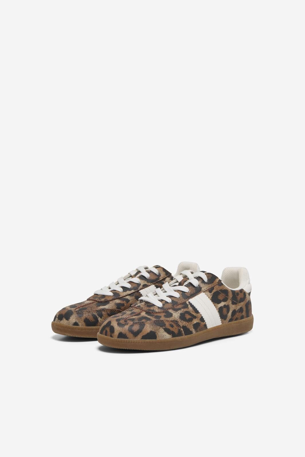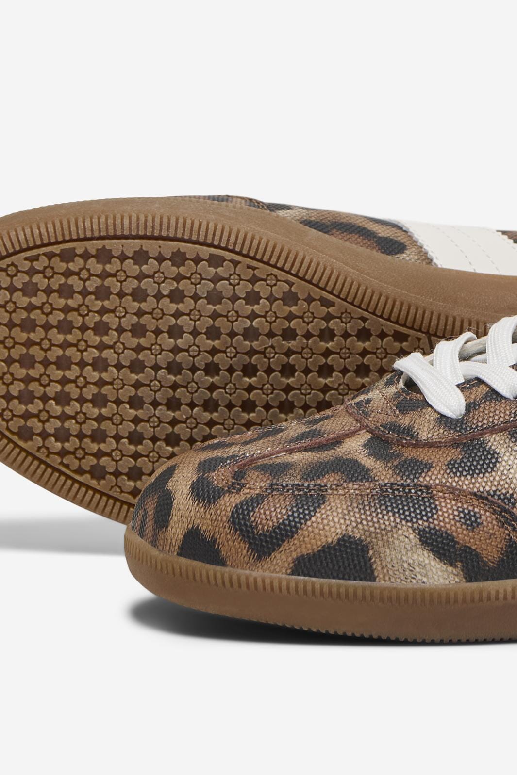 Sneaker von Only mit Leopardenmuster in Sandtönen. Die weißen Streifen an der Seite schaffen einen Kontrast zum Muster, während die Schnürung für einen sicheren Sitz sorgt.