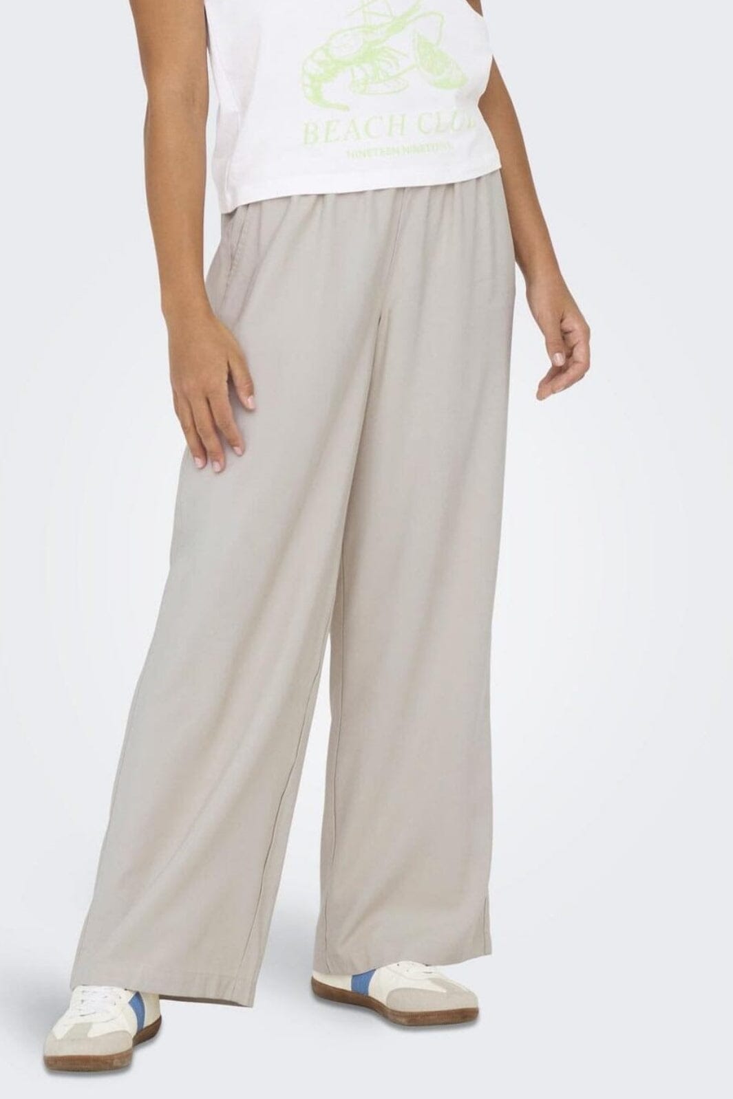 Helle Hosen von Only mit geradem Schnitt und elastischem Bund. Die Hosen haben einen cremigen Farbton und ein schlichtes Design, das sowohl für den Alltag als auch für festliche Anlässe geeignet ist.