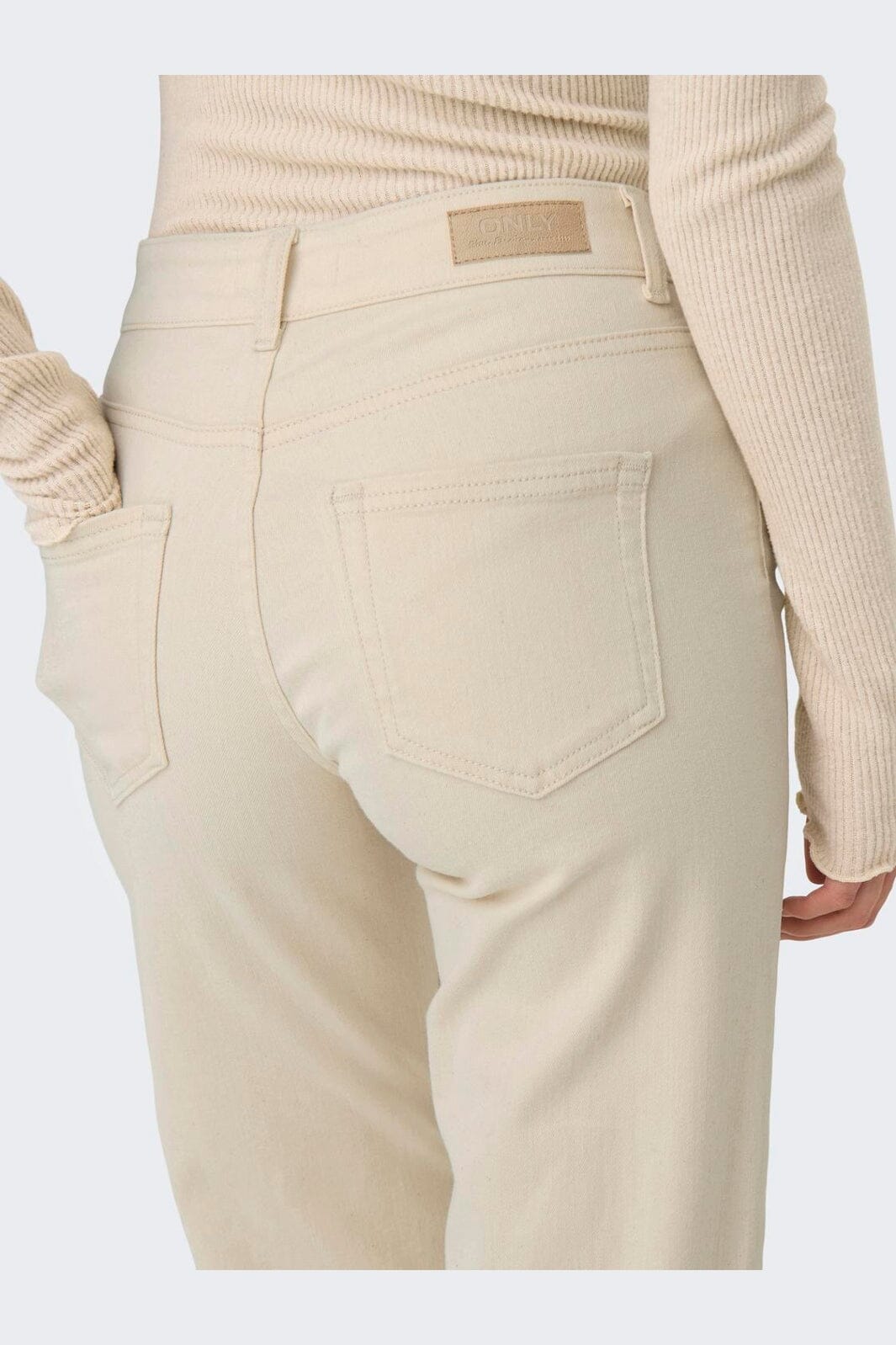 Gerade geschnittene Hose von Only in einem Off-White-Ton. Die Hose hat eine gerade Passform mit mittelhohem Bund und knöchellanger Länge.