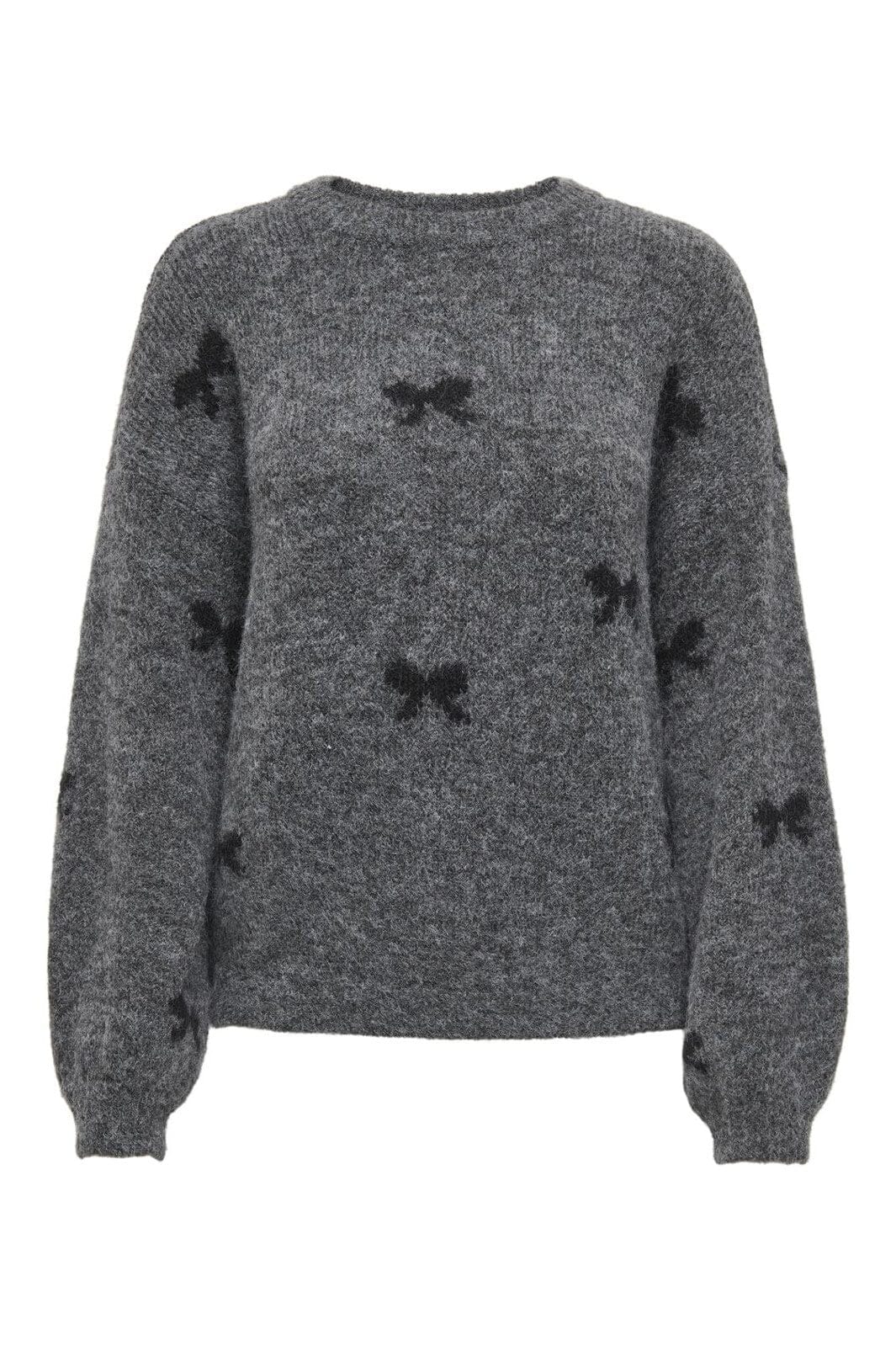 Only Only - Onlbrunhilda Life Ls Bow O-Neck Knt Farbe: 4947221 Medium Grey Melange Black/Mini Bow