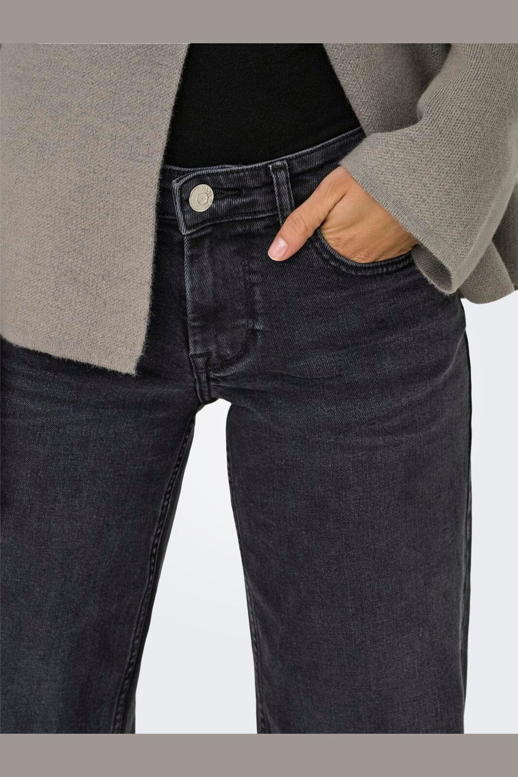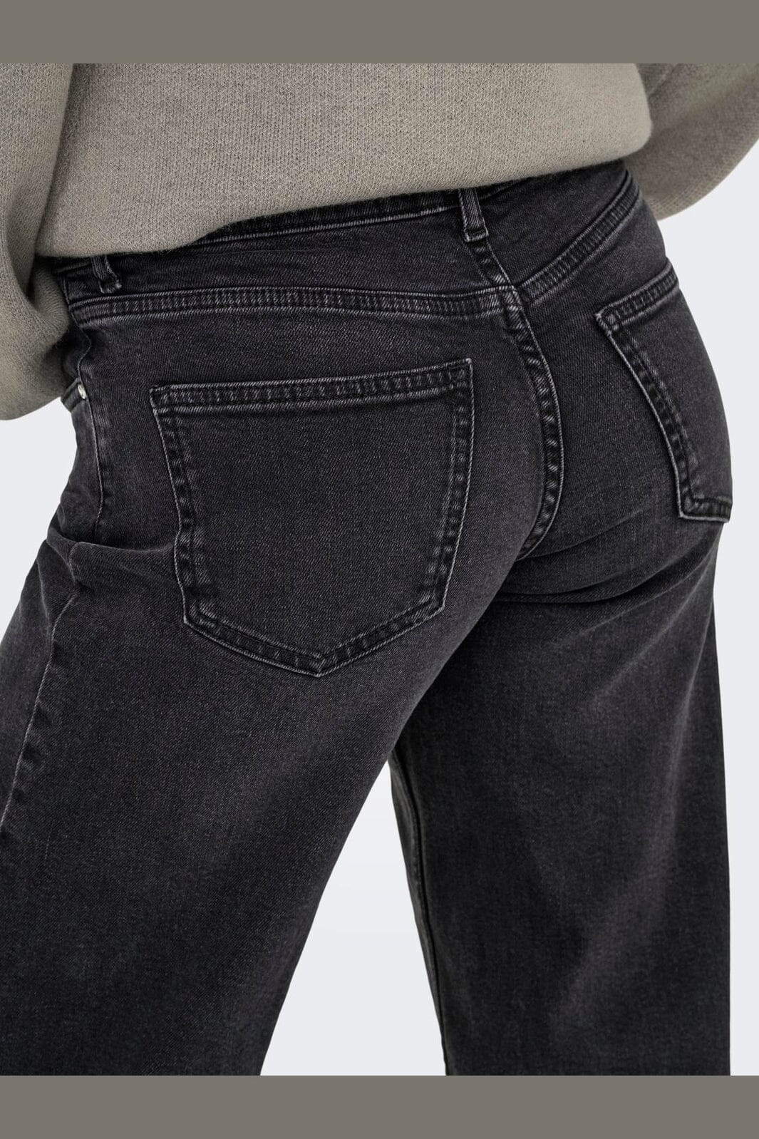 Wide-Leg-Jeans von Only in gewaschenem Schwarz. Die Jeans hat eine lockere Passform und weite Beine, die bis zum Knöchel reichen.