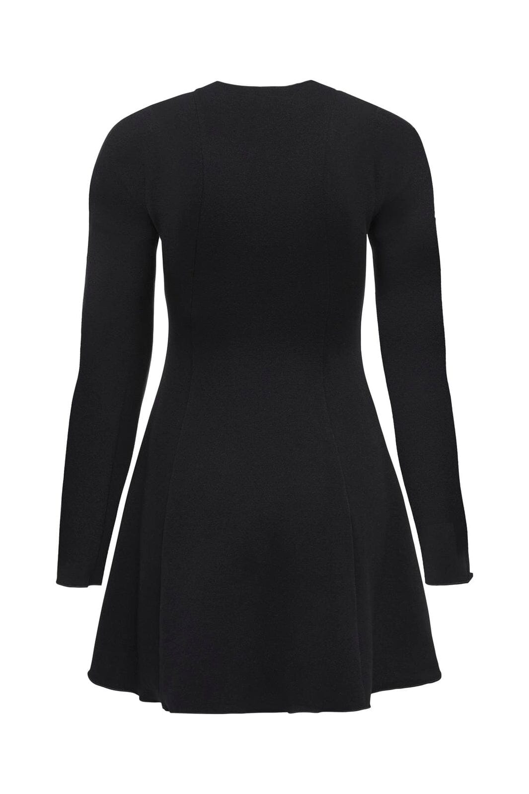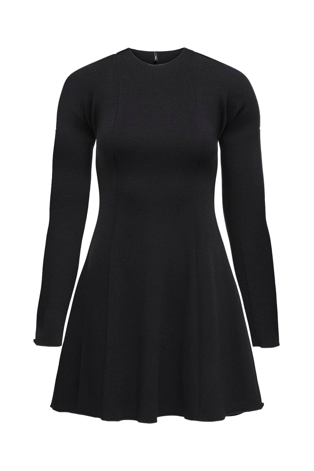Schwarzes Kleid von Only mit langen Ärmeln und rundem Halsausschnitt. Das Kleid hat eine normale Passform und reicht bis zu den Knien. Es ist aus einer weichen Qualität mit leichtem Stretch gefertigt.