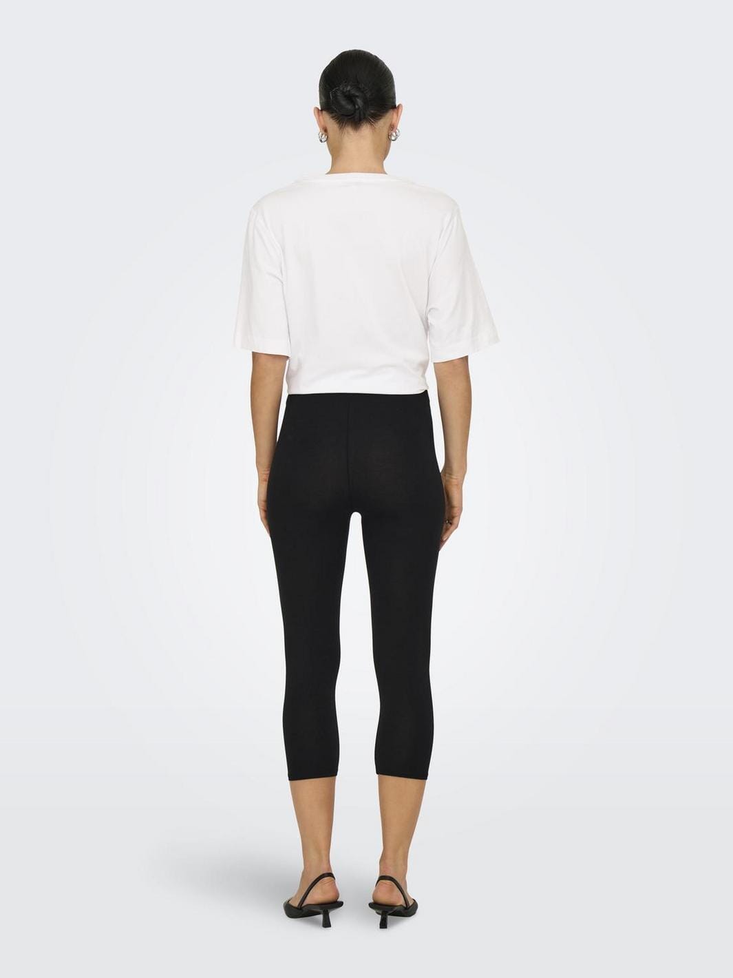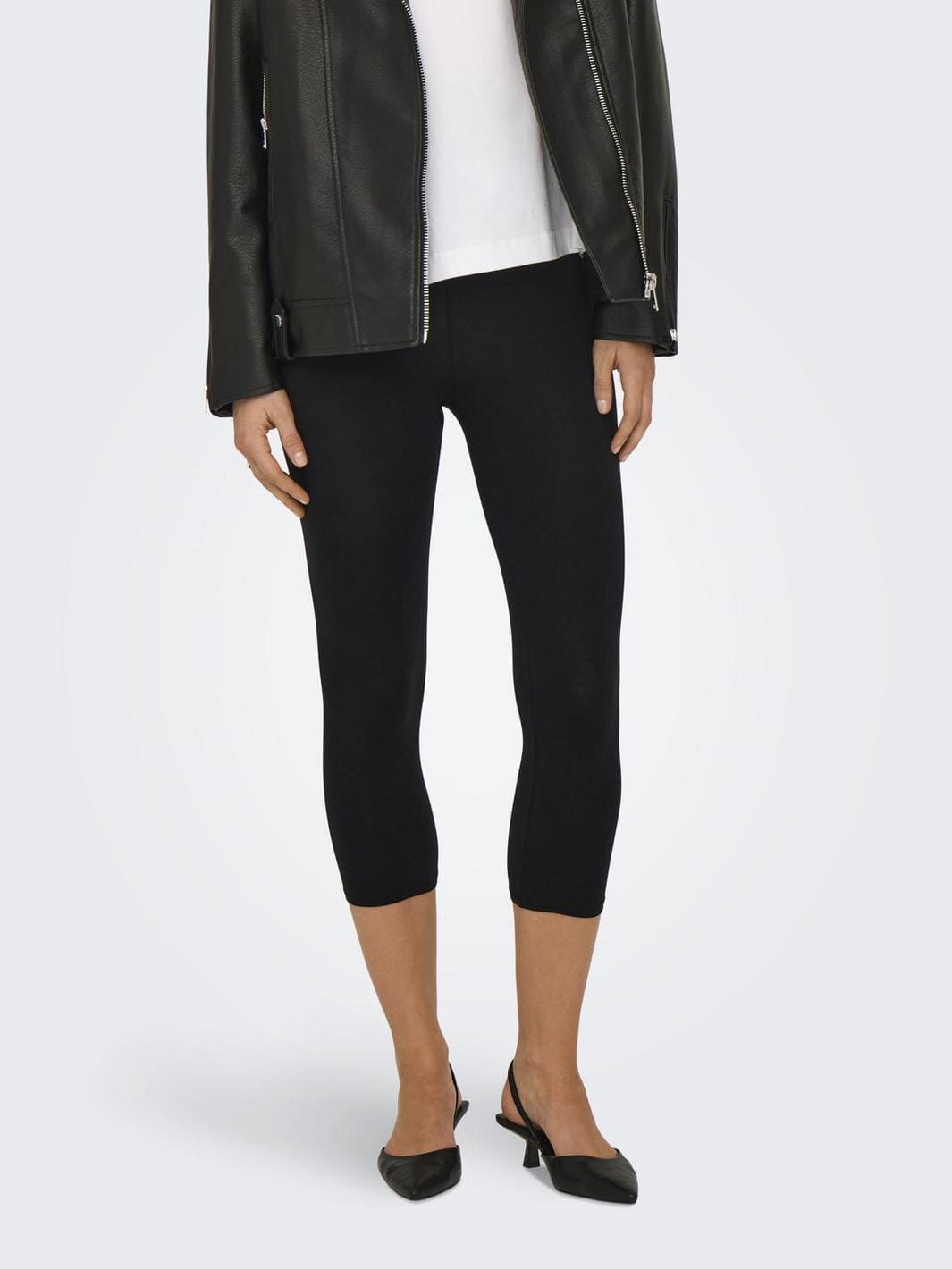 Schwarze 3/4 Leggings von Only mit hoher Taille und Slim Fit. Die Leggings haben eine enge Passform und einen elastischen Bund, der guten Halt um den Bauch bietet.
