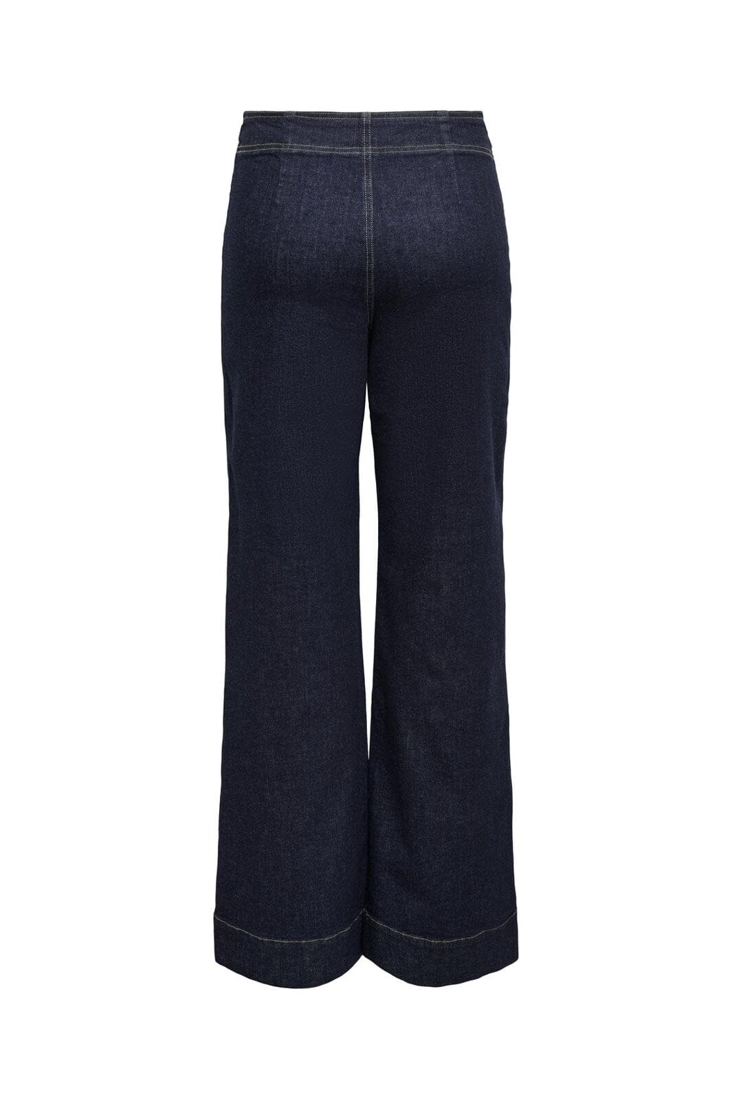 Dunkelblaue Jeans von Only mit weiten Beinen und Knöchellänge. Die Hose hat eine hohe Taille mit doppeltem Knopfverschluss und Schnalle im Bund.
