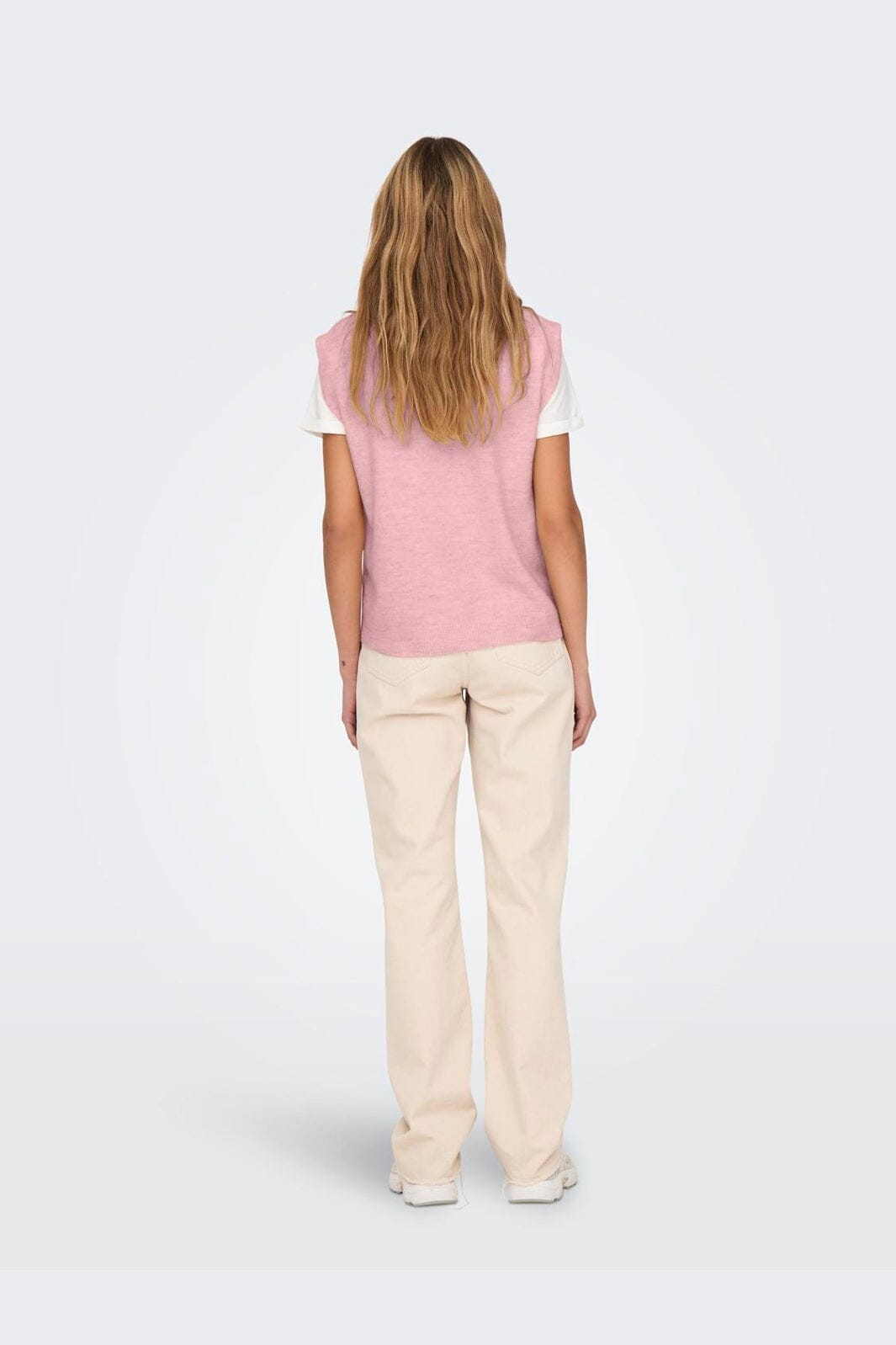 Ärmlose Strickweste von Only in Rosa mit goldfarbenen Herzstickereien. Die Weste hat einen Rundhalsausschnitt und eine Regular-Fit-Passform.