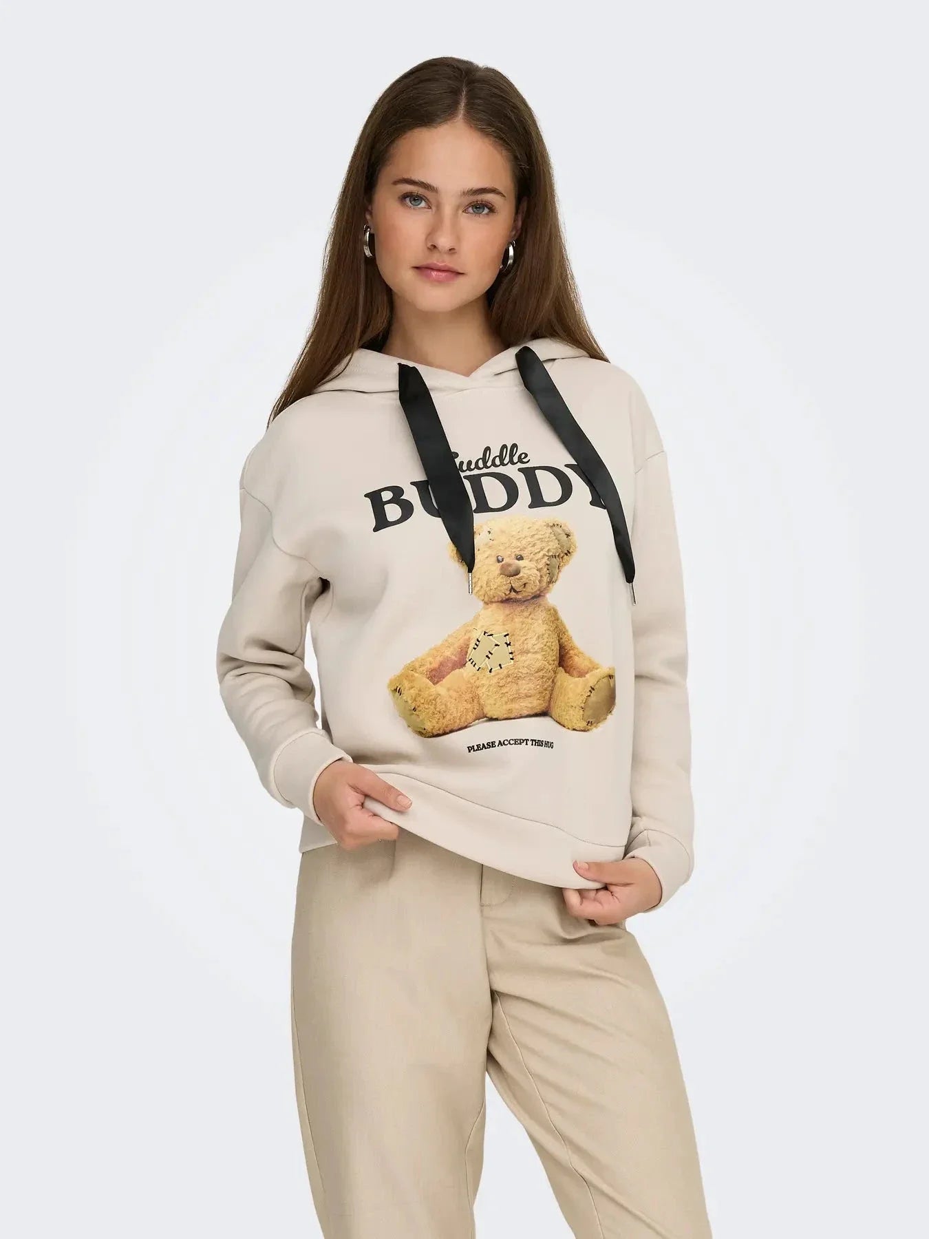 Only Onlricky L/S Hood Box Swt Farbe: 4924854 Pumice Stone Buddy + Black Sateen Strings
