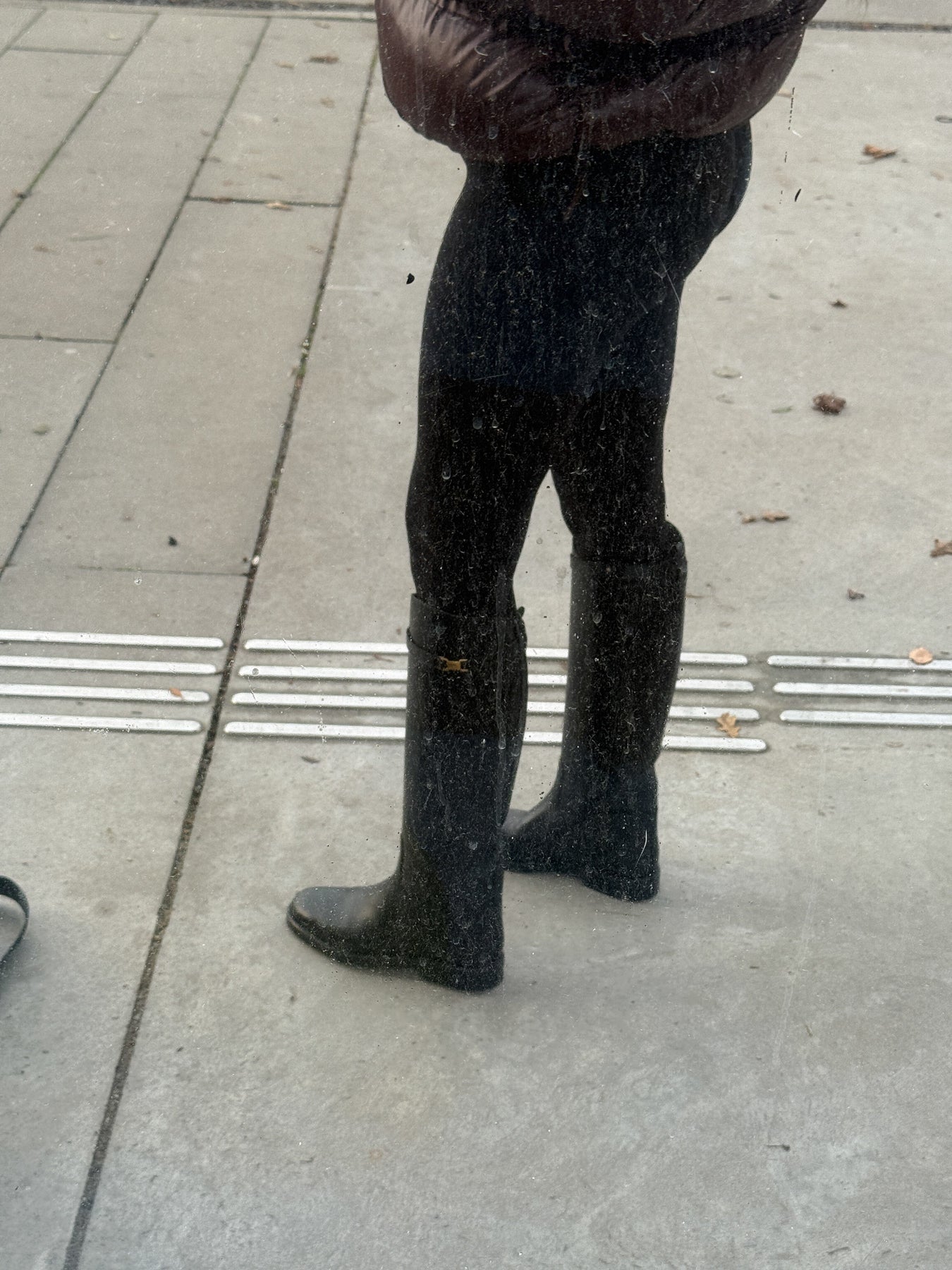 Hoher Stiefel von Phenumb Copenhagen aus schwarzem Leder. Der Stiefel hat einen hohen Schaft, der bis zum Knie reicht, und eine dekorative Schnalle nahe dem oberen Rand.