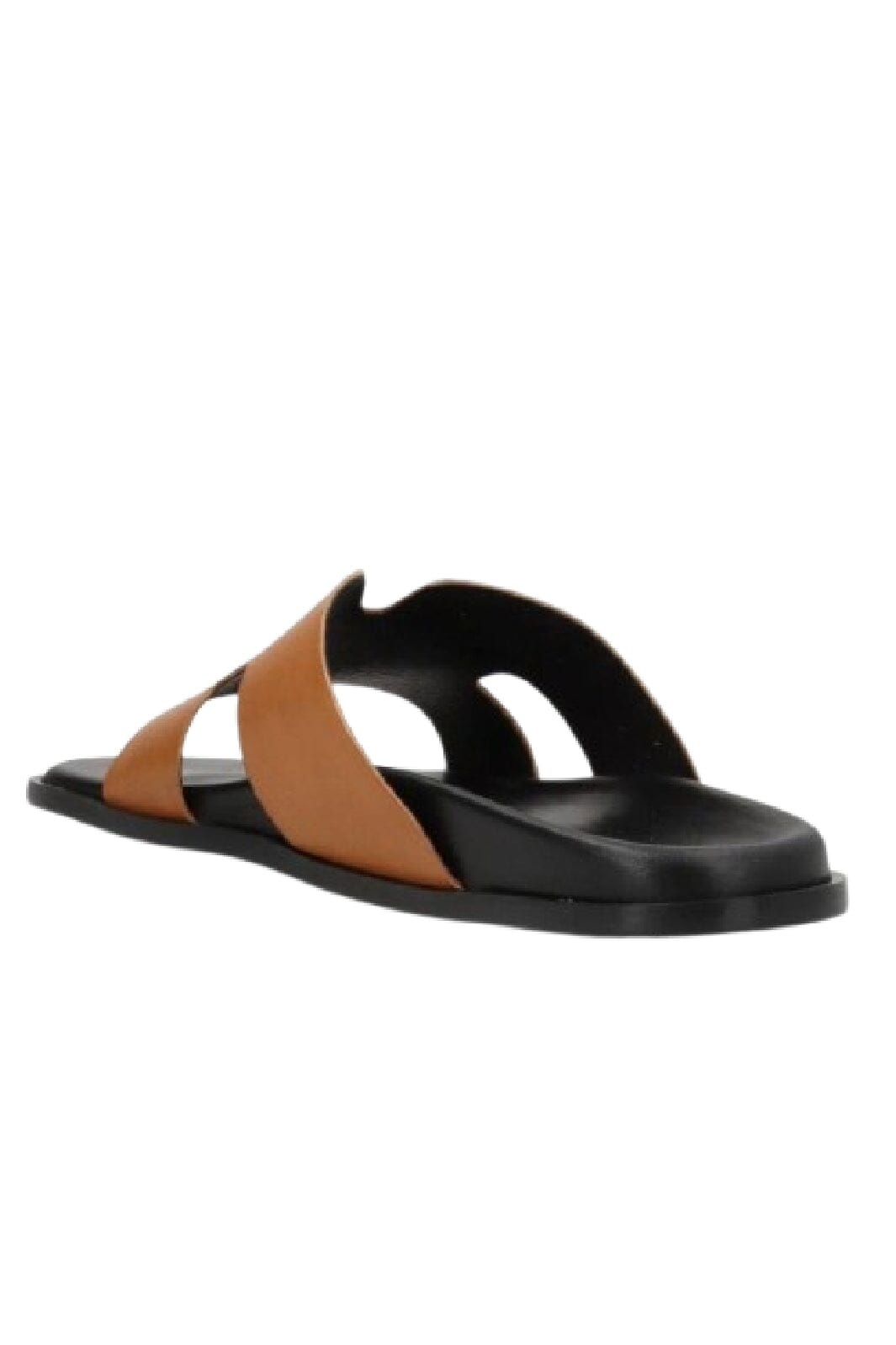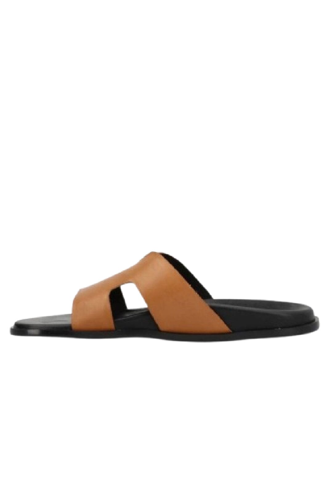 Ledersandale von Phenumb Copenhagen in einem warmen Cognacton. Das weiche Leder passt sich dem Fuß an und bietet guten Komfort beim Tragen. Die Sandalen haben ein klares und einfaches Design.