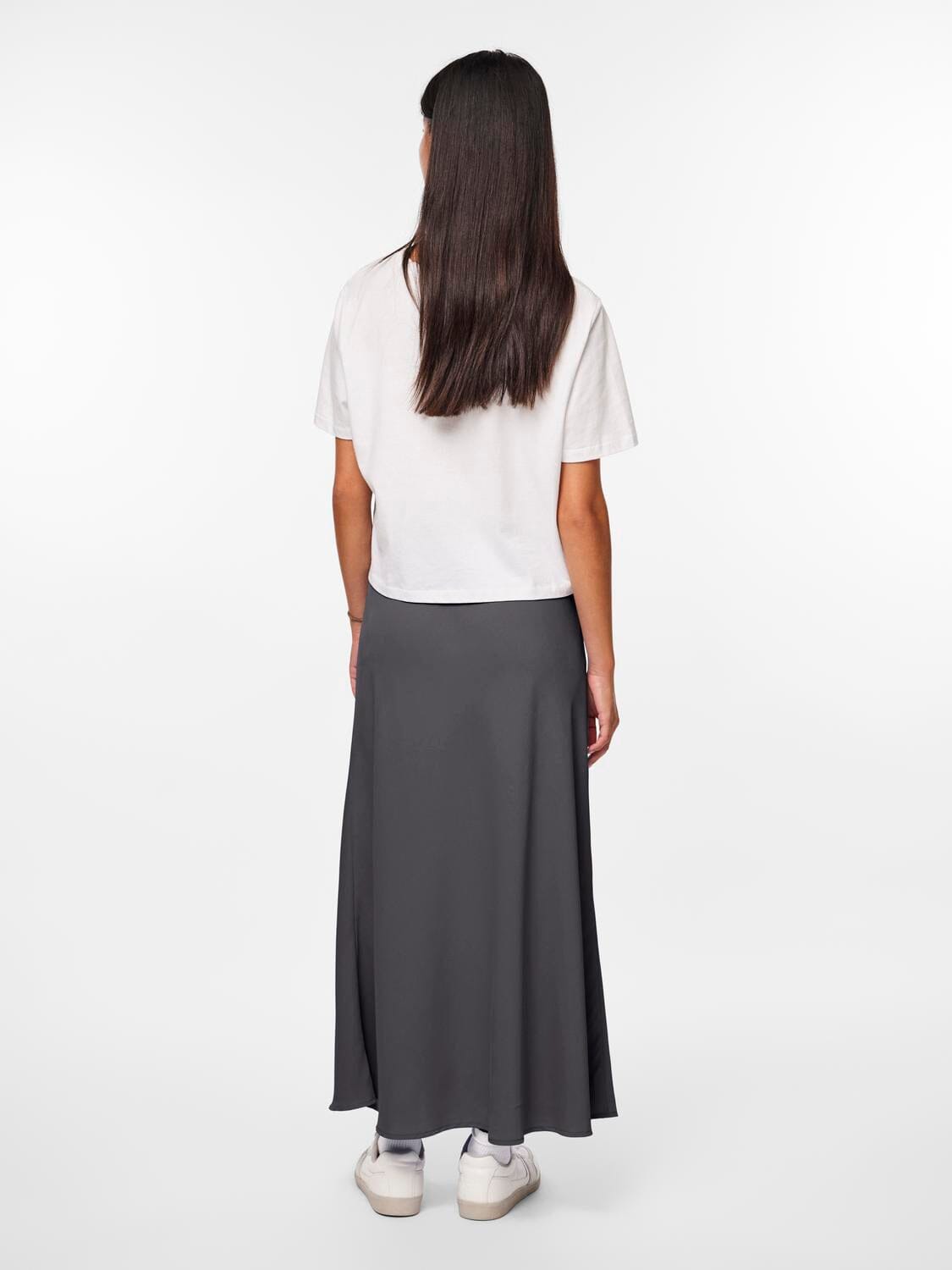 Knöchellanger Rock von Pieces in Dunkelgrau. Er hat eine hohe Taille mit elastischem Bund und eine glatte Oberfläche ohne Muster.