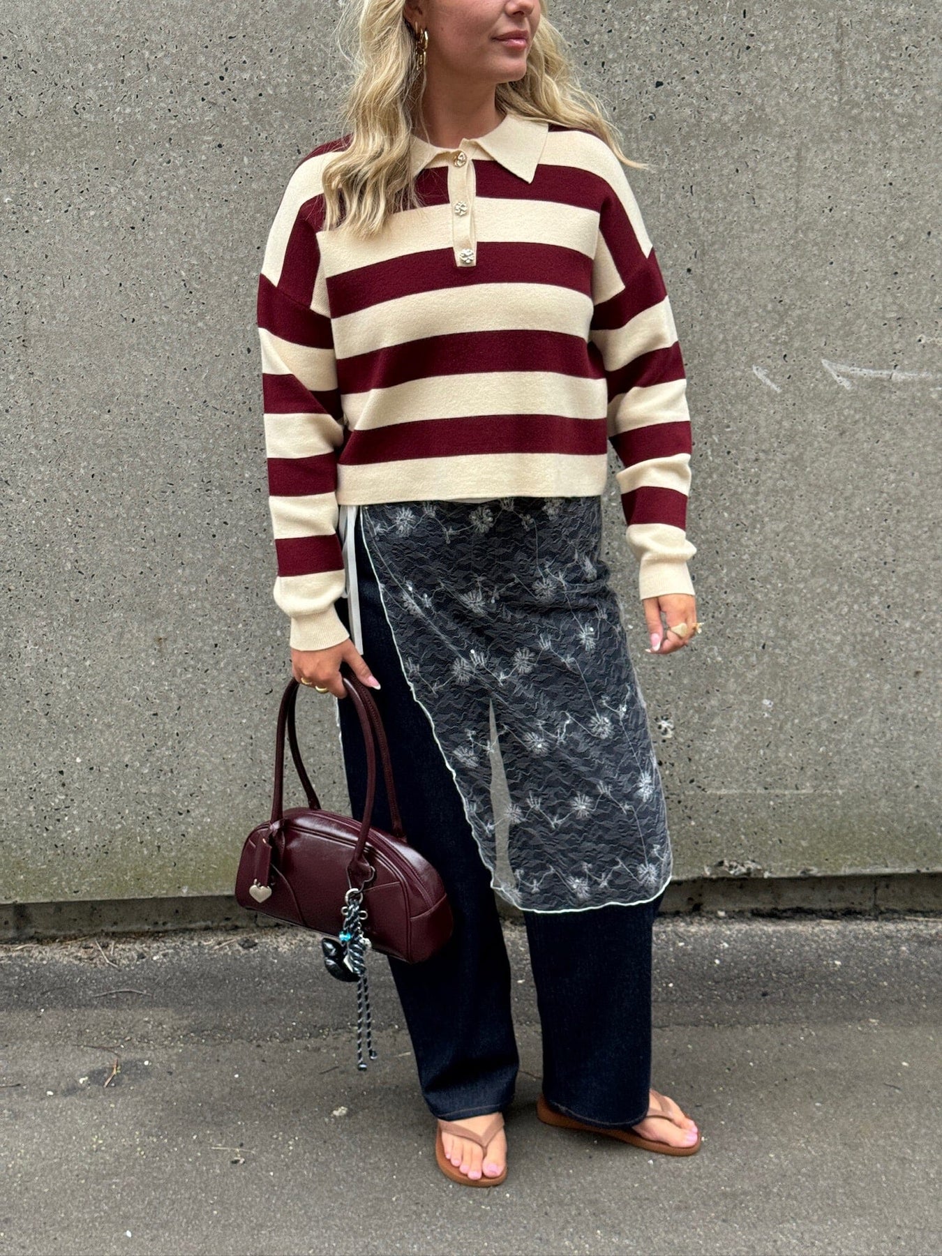 Pieces Pcjassy Ls Short Polo Knit Farbe: 5040020 Winetasting Birch