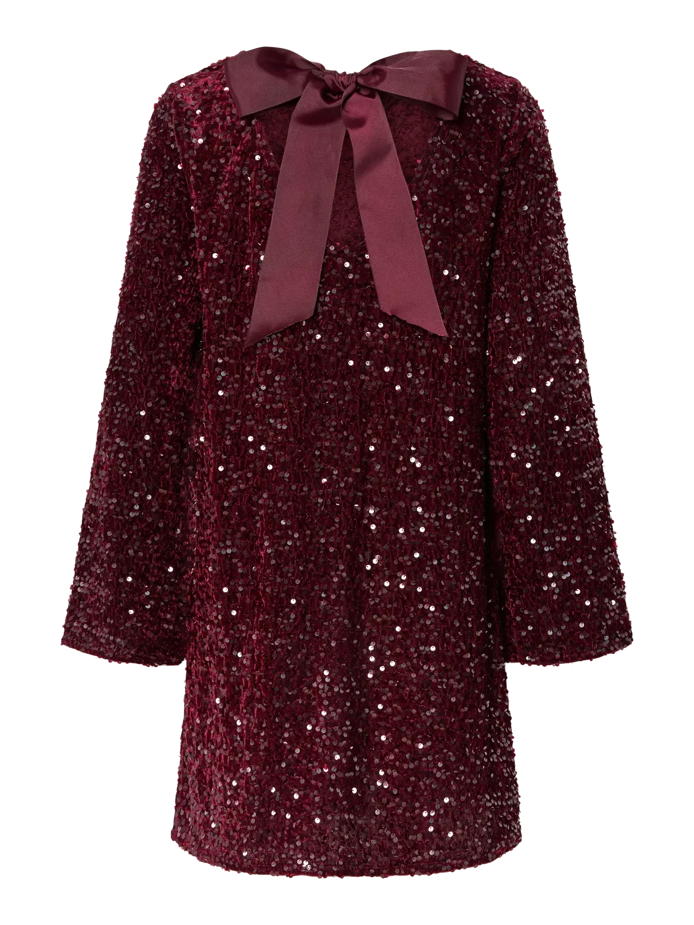 Pieces Pieces - Pckam Ls Deep Back Bow Dress Farbe: 4859164 Tawny Port Tawney Port Sequins