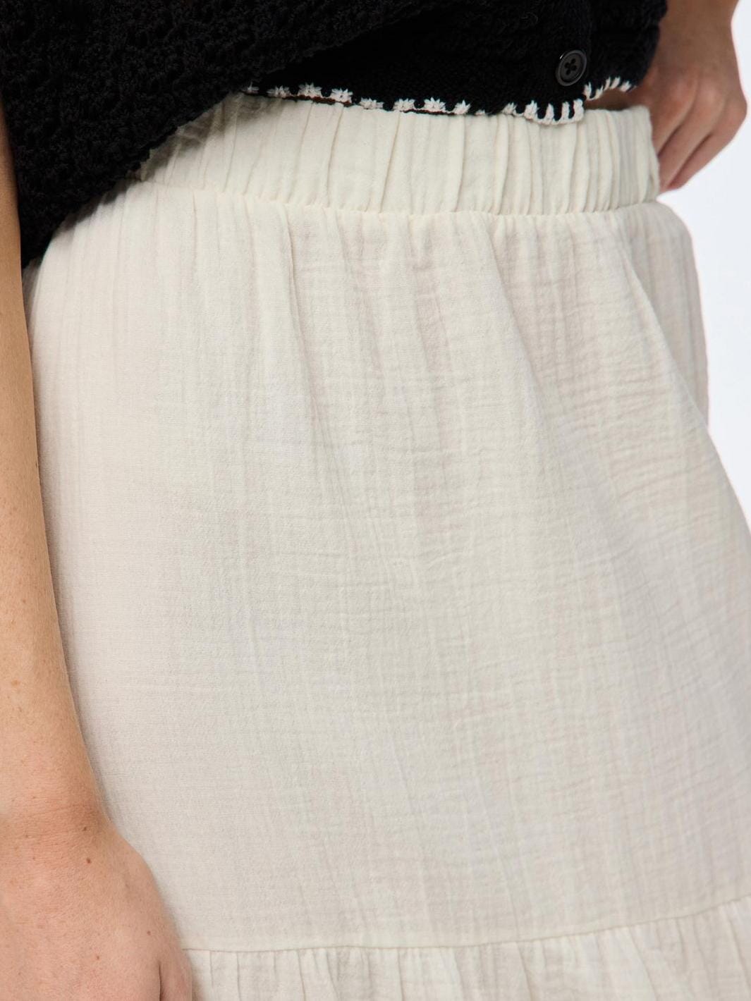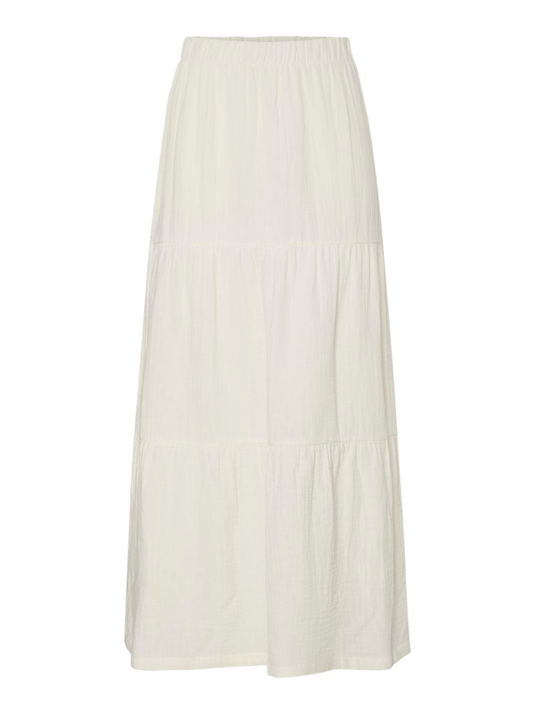 Maxi-Rock von Pieces in einem hellen, weißen Farbton. Er besteht aus gewebter Baumwolle mit hoher Taille und elastischem Bund. Der Rock hat ein gestuftes Design mit mehreren Lagen.