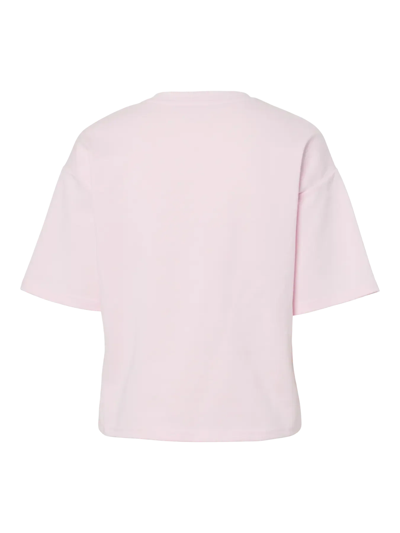 Rosa T-Shirt von Pieces mit Rundhalsausschnitt und kurzen Ärmeln. Die T-Shirt hat eine Regular-Fit-Passform und überschnittene Schulternähte.