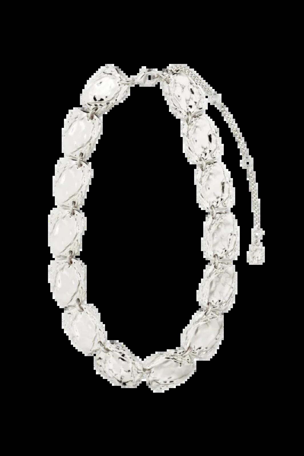 Versilberte Halskette von Pilgrim mit rustikalen, flachen Gliedern. Die texturierten Oberflächen schaffen einen rauen und künstlerischen Ausdruck, während die Versilberung einen feinen Glanz verleiht.