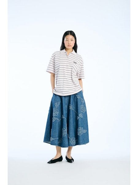 Gestreiftes Poloshirt von Rotate in hellrosa Nuancen mit Polokragen und oversized Passform.