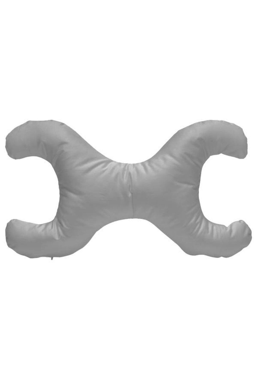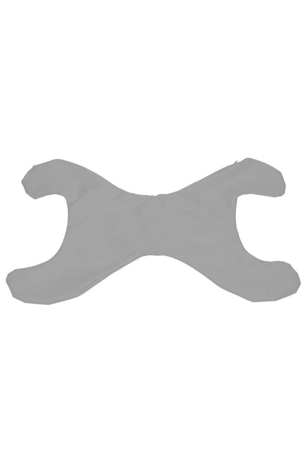 Graues Kissenbezug mit X-Form von Save My Face. Der Bezug hat eine weiche Perlenwebung aus Baumwolle, die eine angenehme Oberfläche auf der Haut bietet.