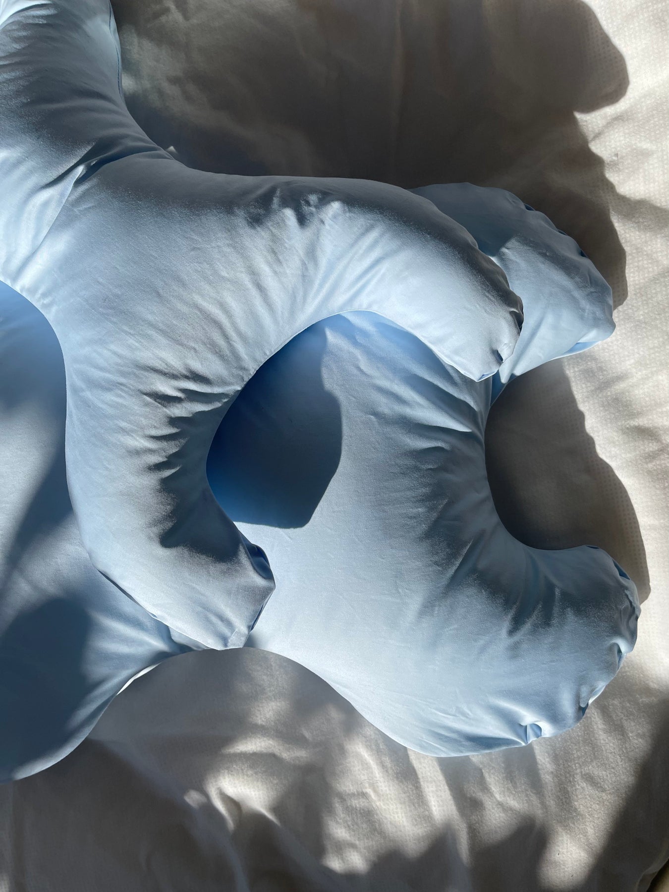 Himmelblaues Kissenbezug von Save My Face mit Perlenwebung. Der Bezug besteht aus Baumwolle mit hoher Fadendichte, was eine weiche und glatte Oberfläche bietet.