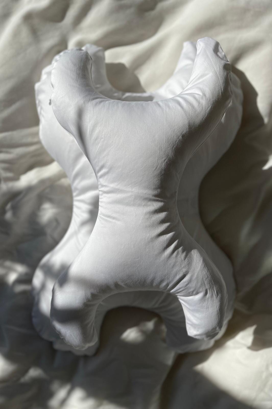Weißer Kissenbezug von Save My Face mit X-förmigem Design. Der Bezug besteht aus Baumwolle mit 500 Fäden pro Quadratzoll und hat eine spezielle Perlenwebung.