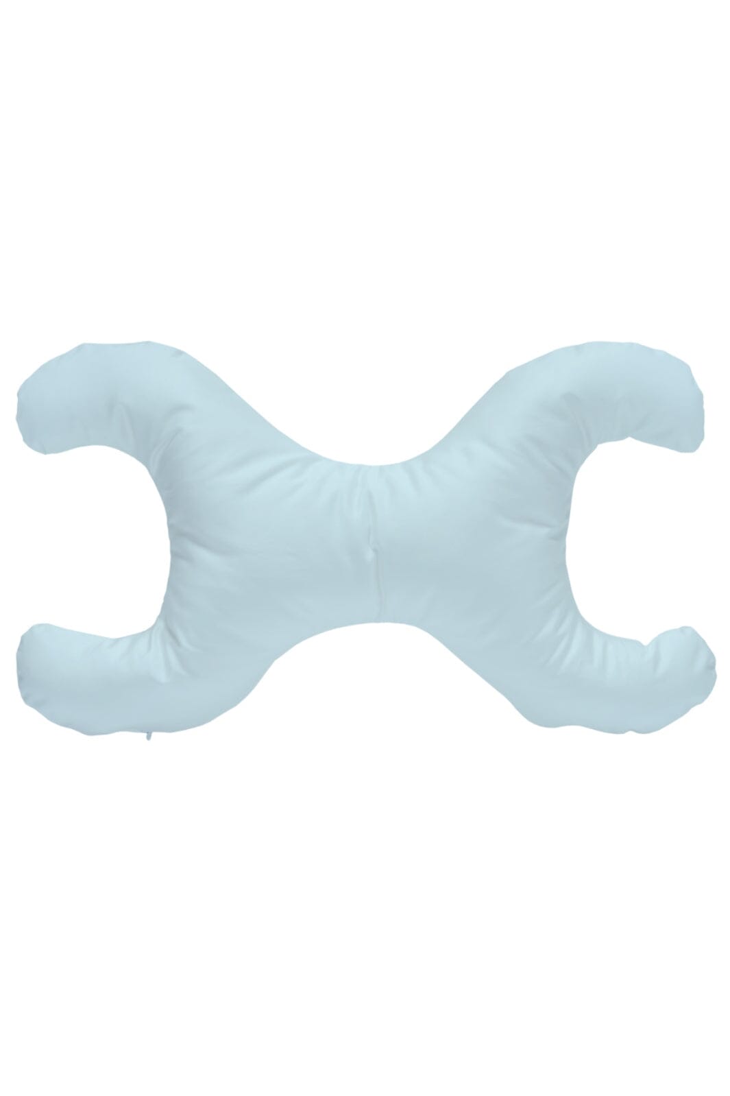 Kleine Kissen mit X-förmigem Design und hellblauer Hülle aus 100 % Baumwolle. Das Kissen ist mit synthetischen Fasern gefüllt, die sowohl bakterienresistent als auch feuchtigkeitsabweisend sind.
