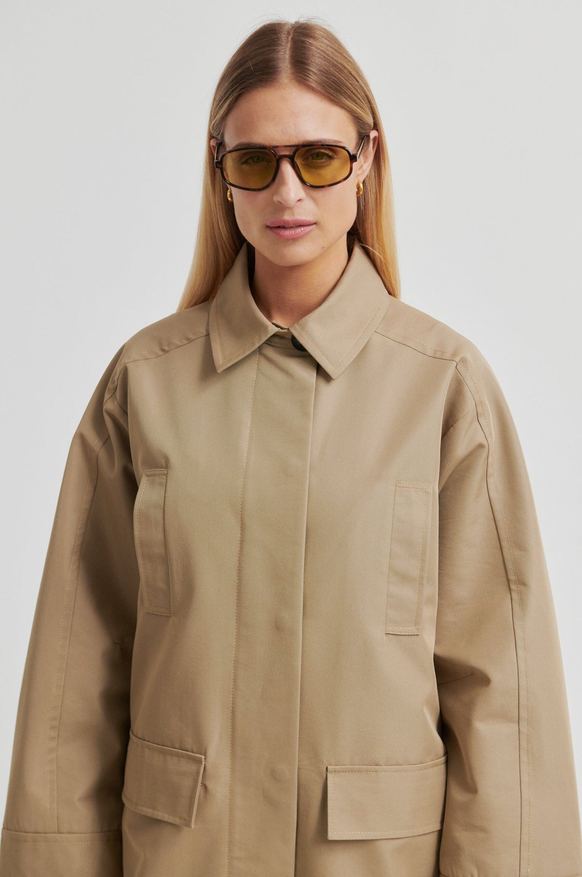Mantel von Second Female in der Farbe Petrified Oak, einem beige-braunen Farbton. Der Mantel besteht aus einer Mischung aus Baumwolle, Polyester und Viskose.