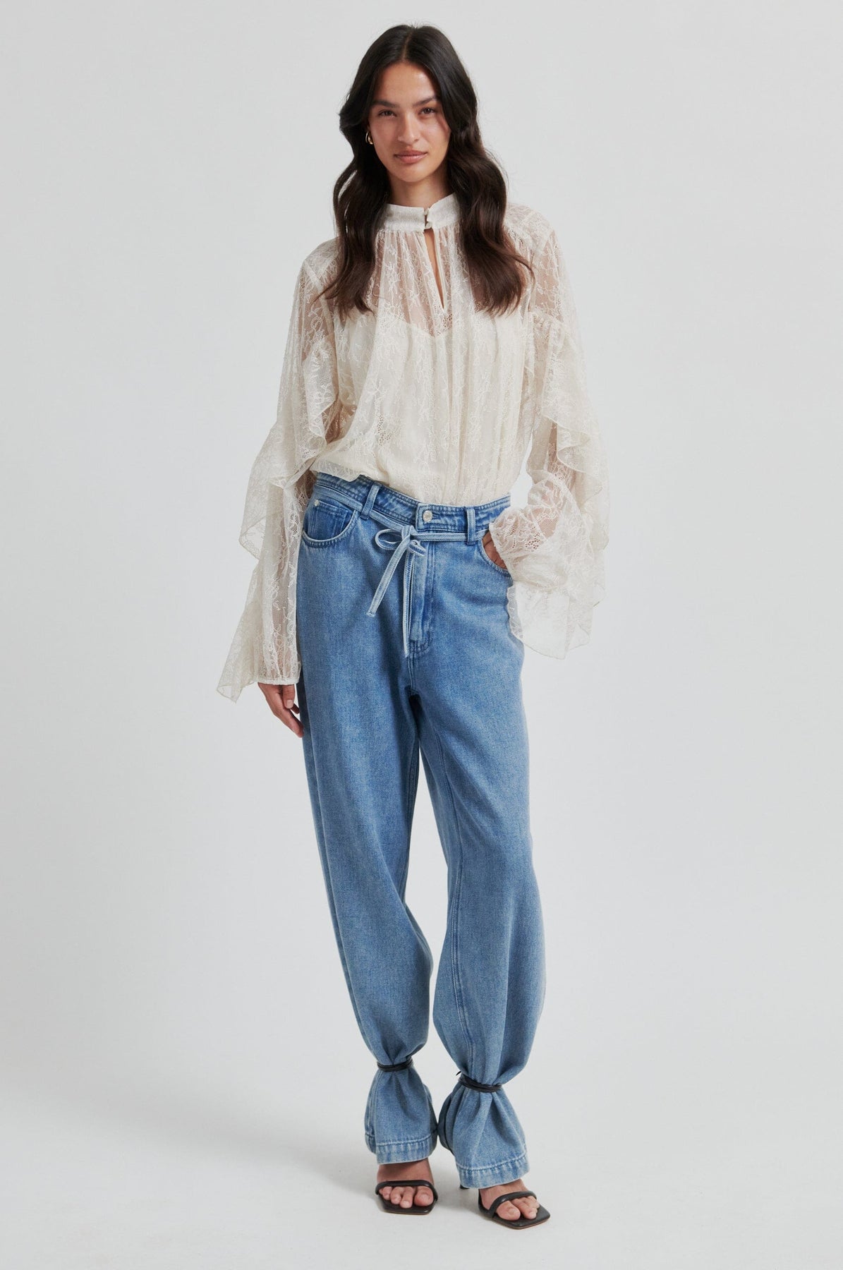 - Weite Ärmel mit gedrehten Rüschen-Details