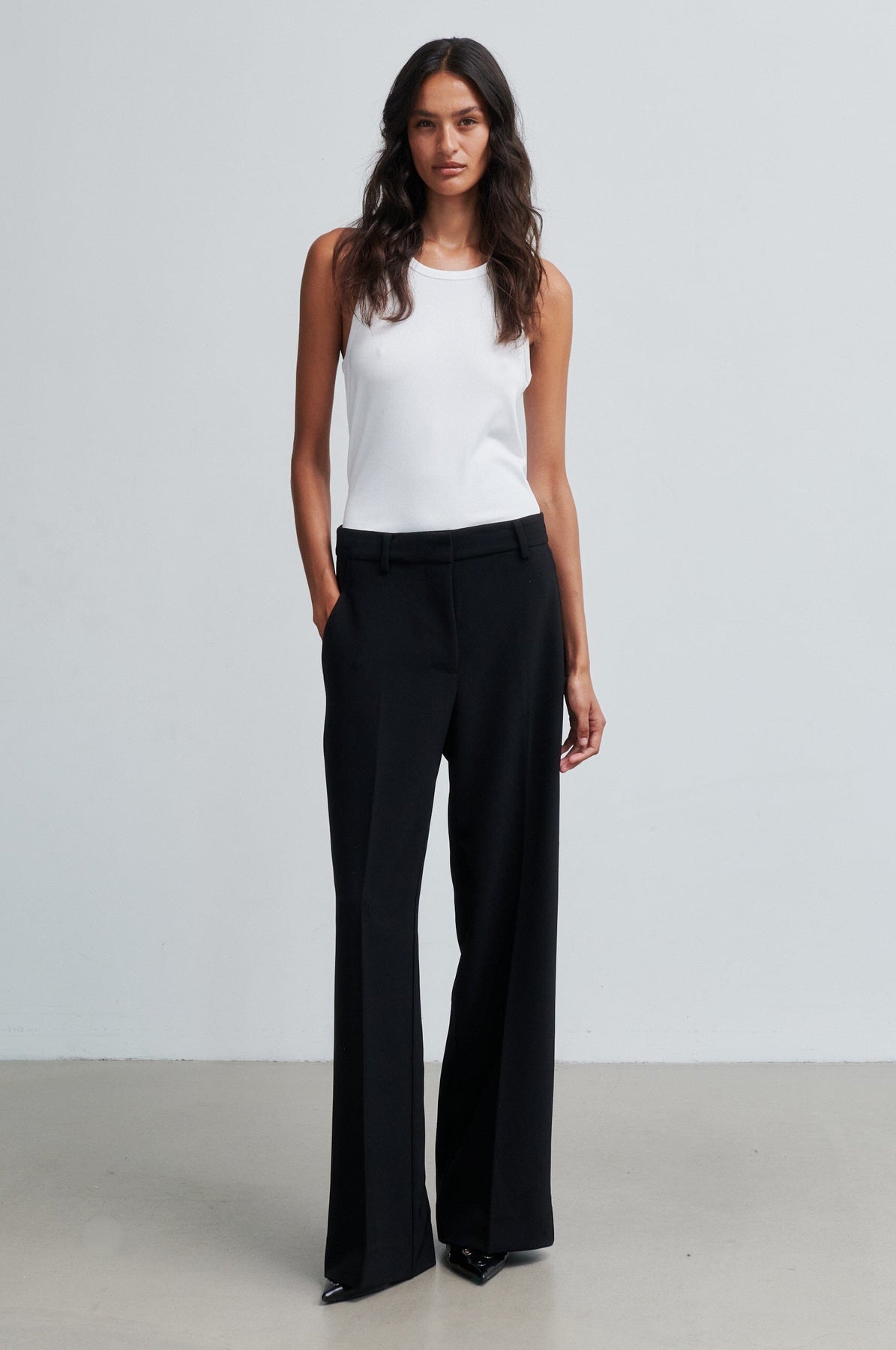 Weißes Tanktop von Second Female aus einer weichen Viskosemischung. Das Top eignet sich sowohl für entspannte Alltage als auch für das Tragen zu Hause.