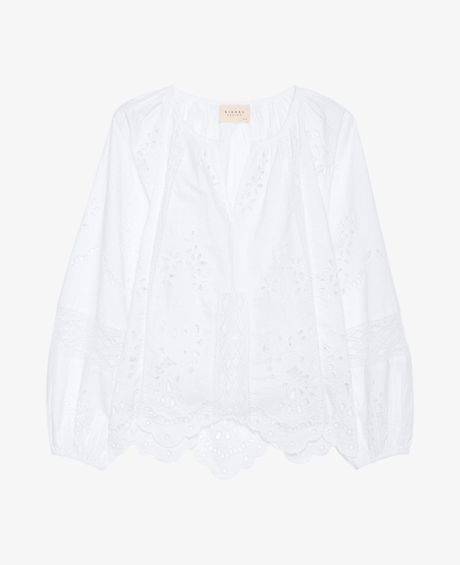 Weiße Bluse von Sissel Edelbo in einem Off-White-Ton. Hergestellt aus 100 % Bio-Baumwolle mit Stickerei und Spitze.