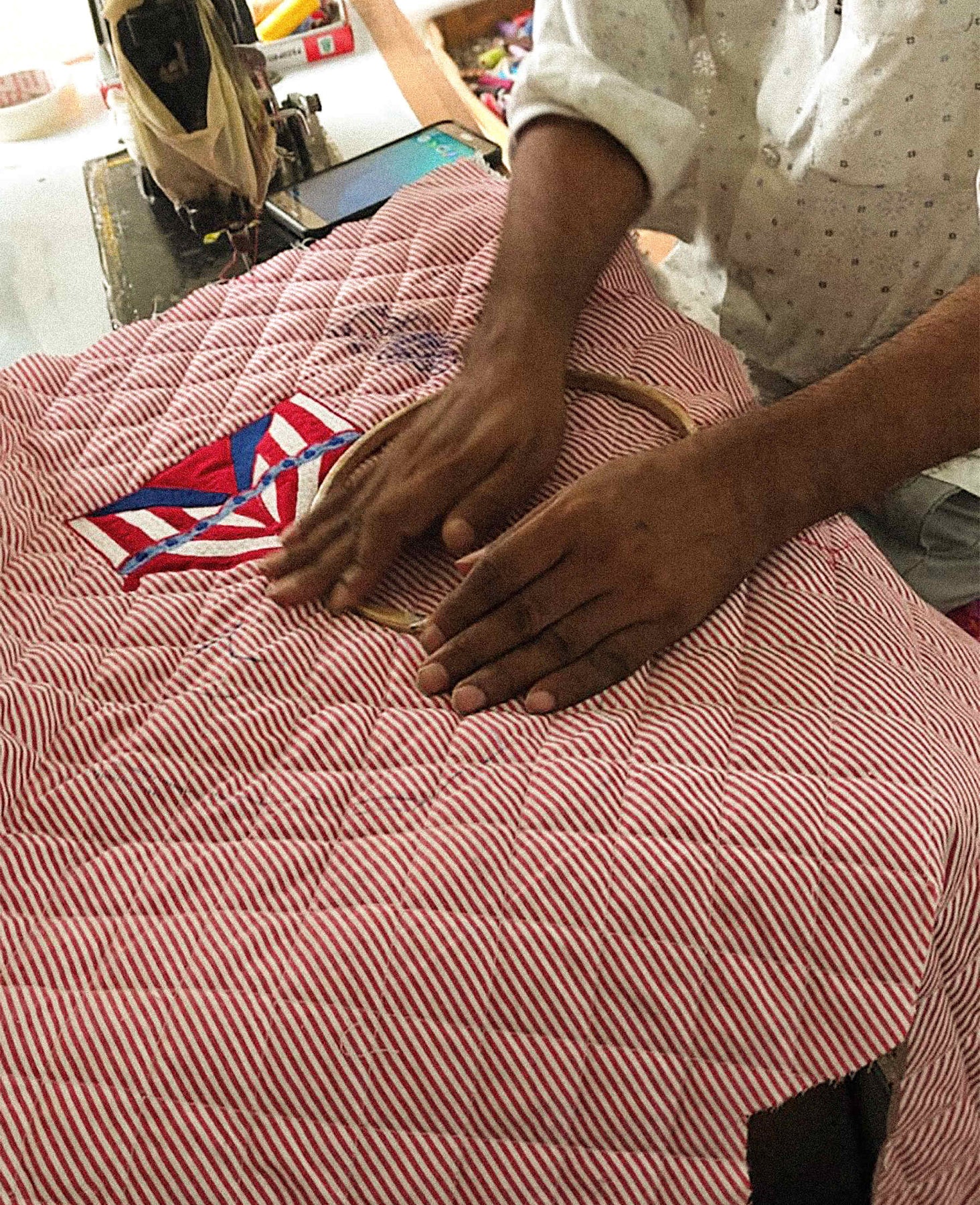 - Gestreifter Überschussstoff mit Baumwollfutter