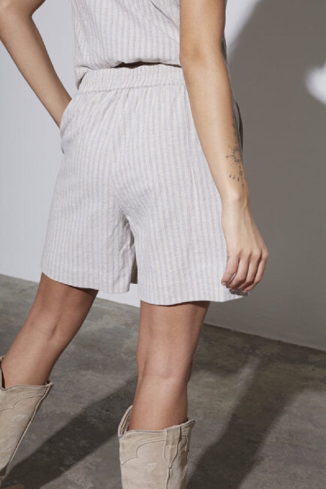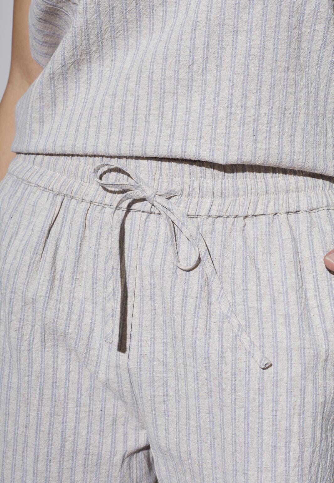 Gestreifte Shorts von Sisters Point in hellblauen und beigen Tönen. Sie haben einen bequemen Regular Fit und sind aus einer leichten Mischung aus Baumwolle und Leinen gefertigt.
