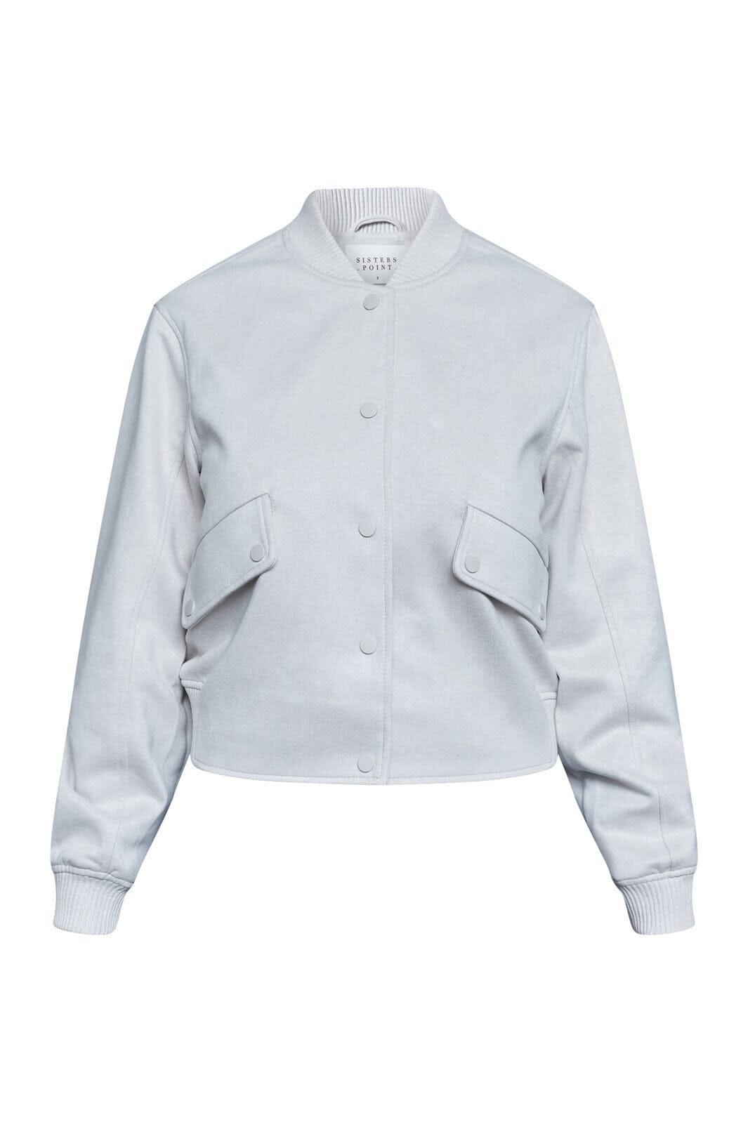 Cremweiß Bomberjacke von Sisters Point mit kurzer Länge und Rippkanten. Die Jacke hat eine lockere Passform mit Druckknöpfen und zwei Fronttaschen.