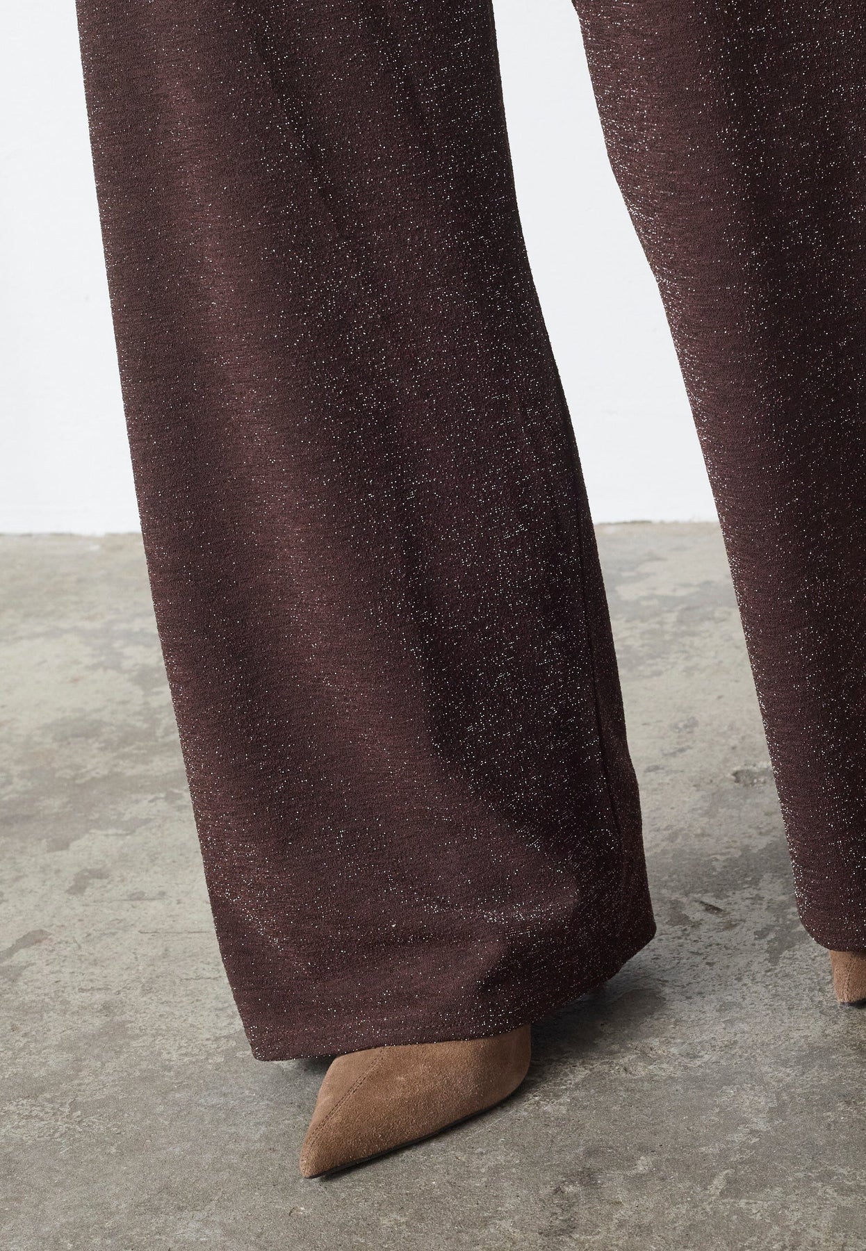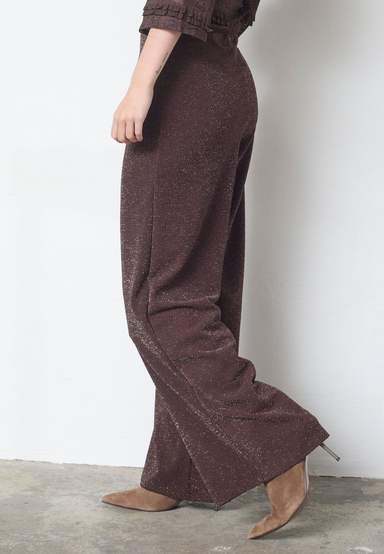 Hose von Sisters Point in Schokoladenbraun mit Silberglitzer. Die Hose hat weite Beine und eine lockere Passform, die sich für festliche und formelle Anlässe eignet.