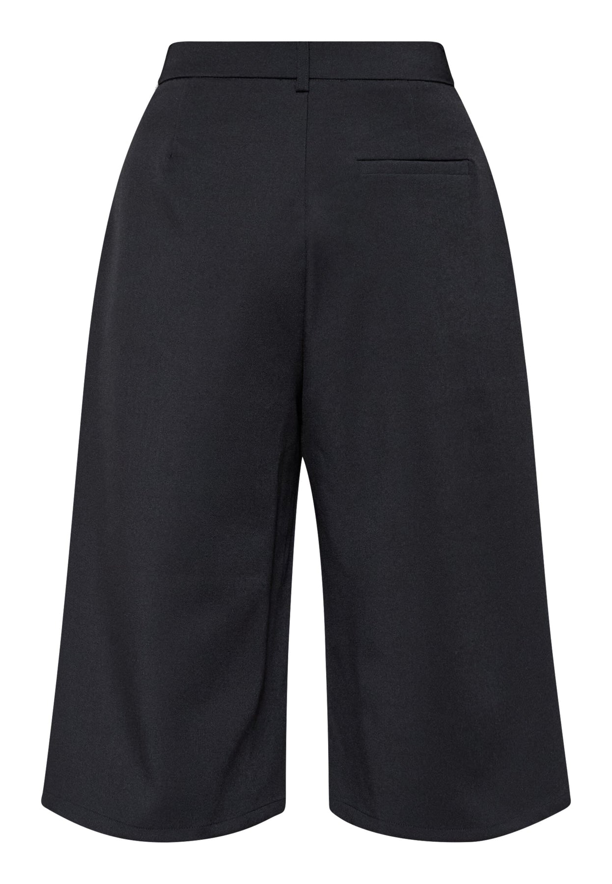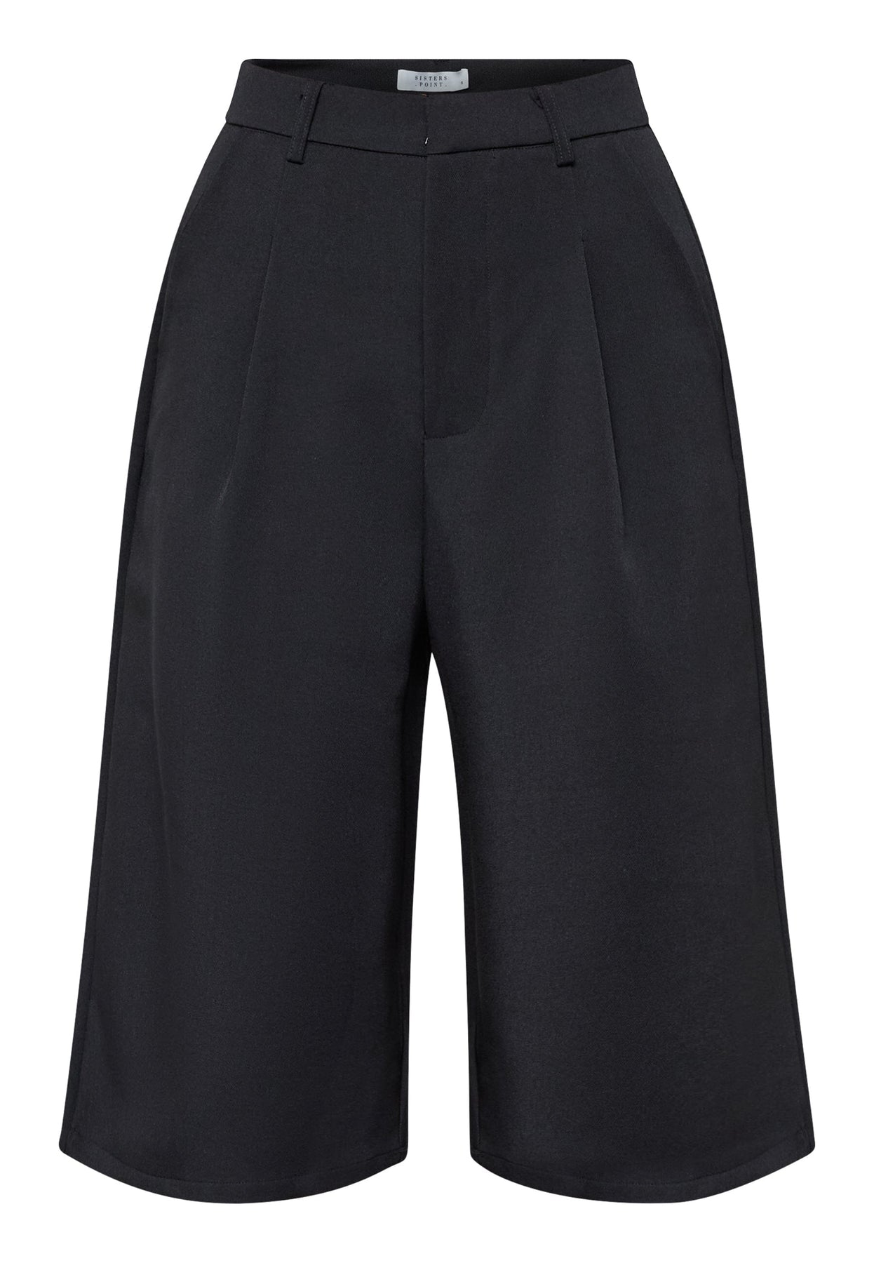 Schwarze Culotte-Shorts von Sisters Point mit lockerer Passform und Knielänge. Die Shorts haben eine hohe Taille und Falten vorn.