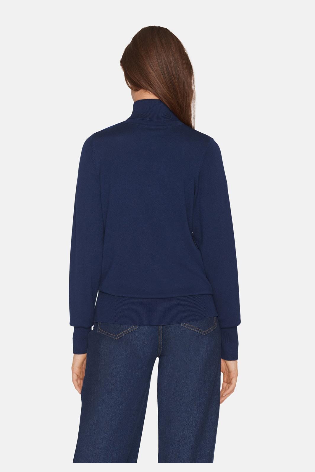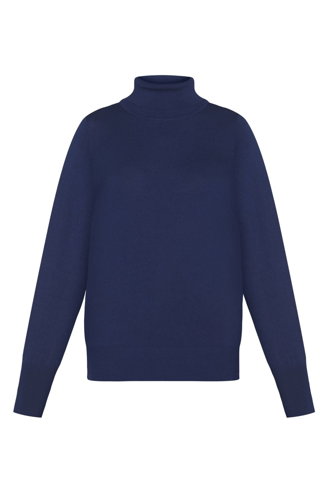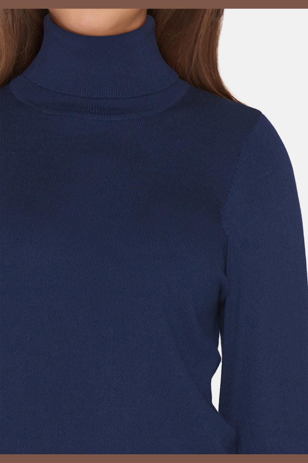 ist ein einfarbiger, eng anliegender Strickpullover mit Rollkragen. Der Strickpullover hat ein breites Rippbündchen an der Taille und am Handgelenk.