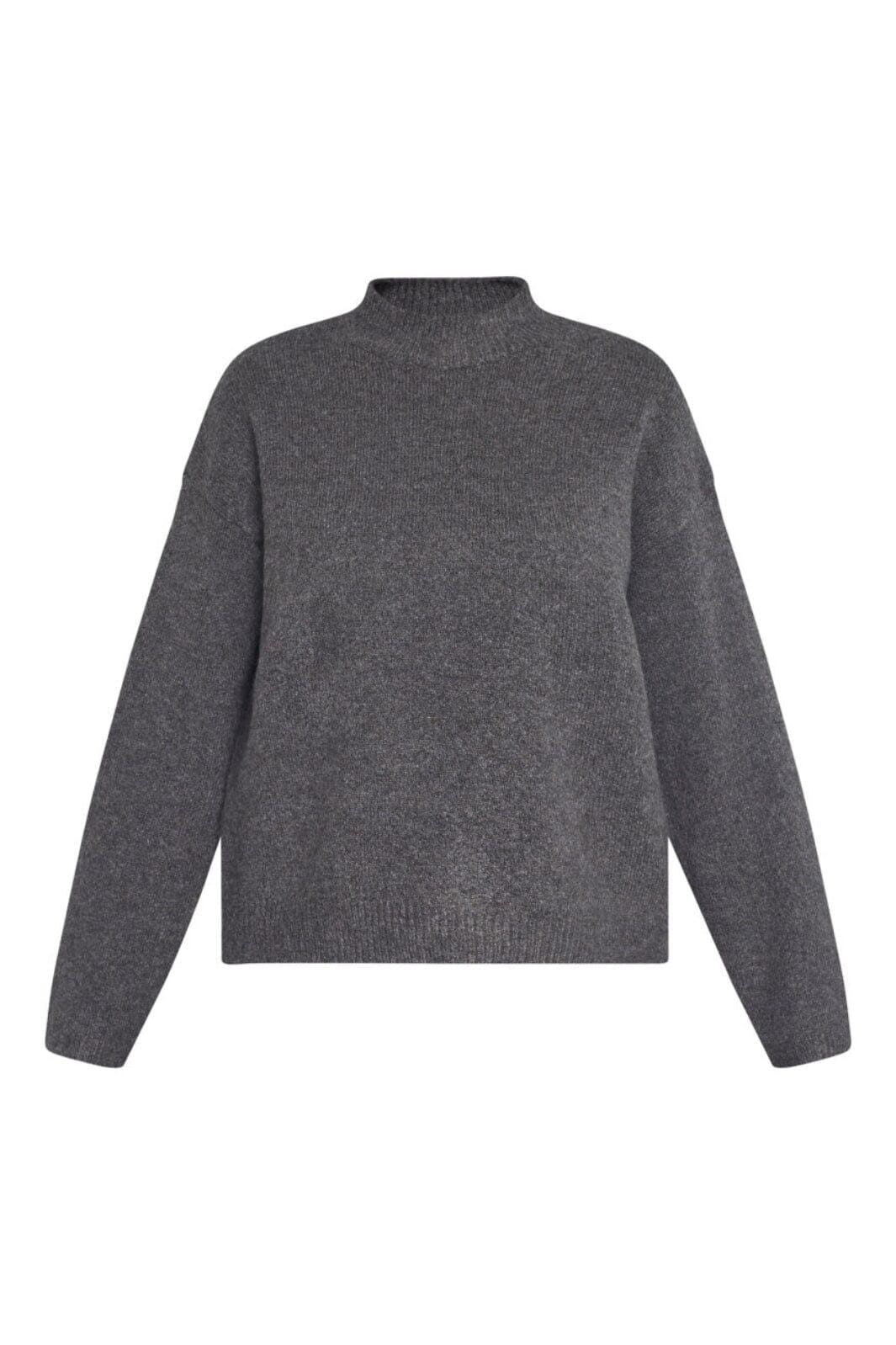 Gestrickter Pullover von Sisters Point in brauner und grauer Melange. Der Pullover hat einen hohen Halsausschnitt, lange Ärmel und eine lockere Passform.