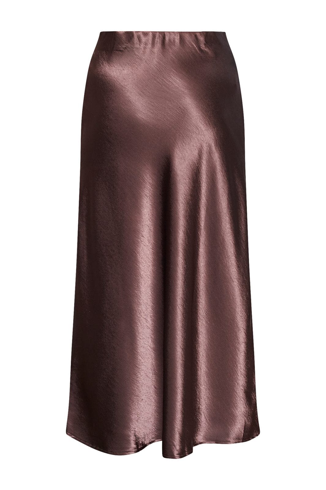 Brauner Rock von Sisters Point aus glänzendem Satinmaterial. Der A-Linien-Schnitt und der glatte Stoff verleihen dem Rock einen weichen Fall. Die Länge reicht bis zur Wade.