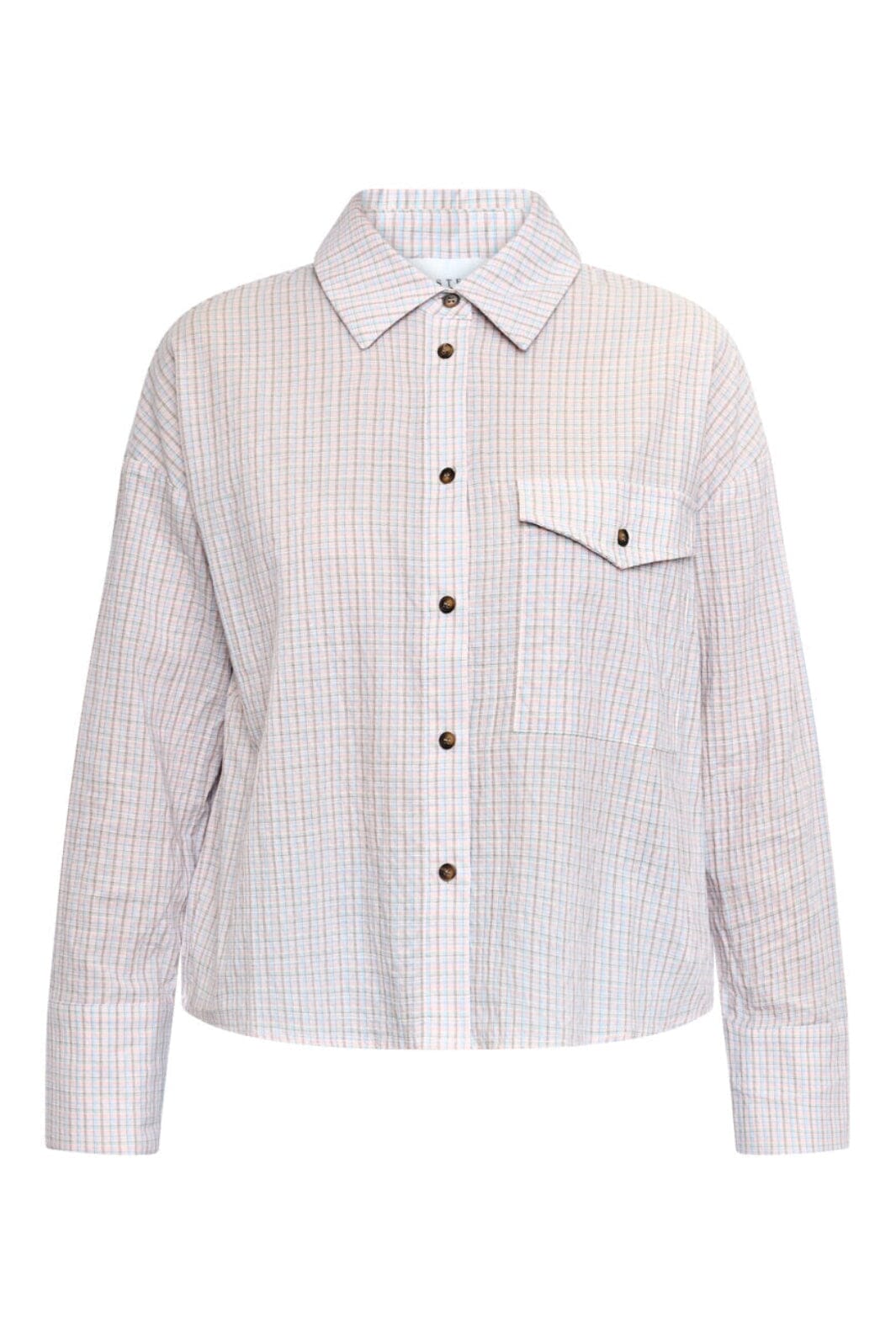 Kariertes Hemd von Sisters Point, aus Baumwolle in einem hellrosa Farbton mit kariertem Muster.
