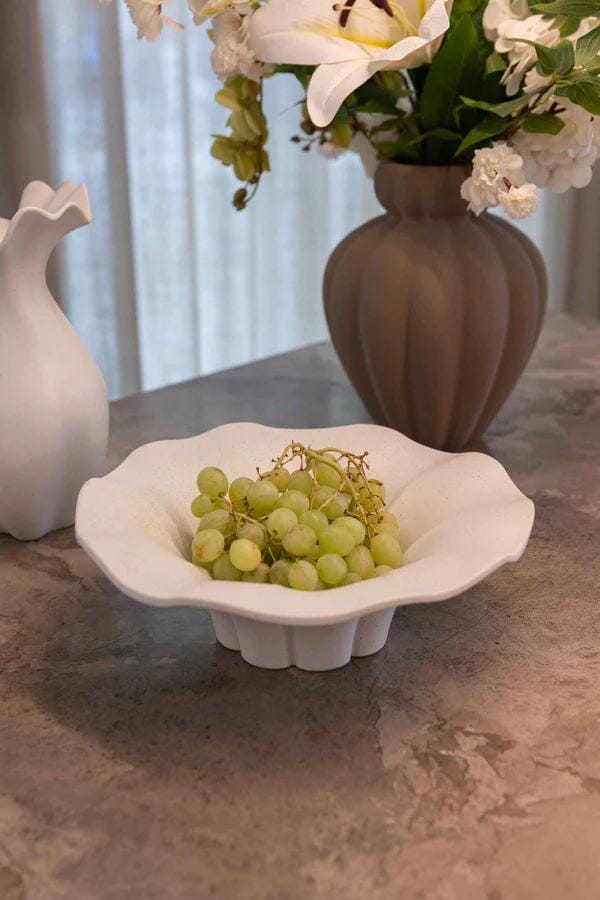 Keramische Schüssel von Specktrum mit gewelltem Rand und glatter Oberfläche. Die Schüssel kommt in einem einheitlichen Off-White-Ton, der es einfach macht, sie mit anderem Geschirr zu kombinieren.