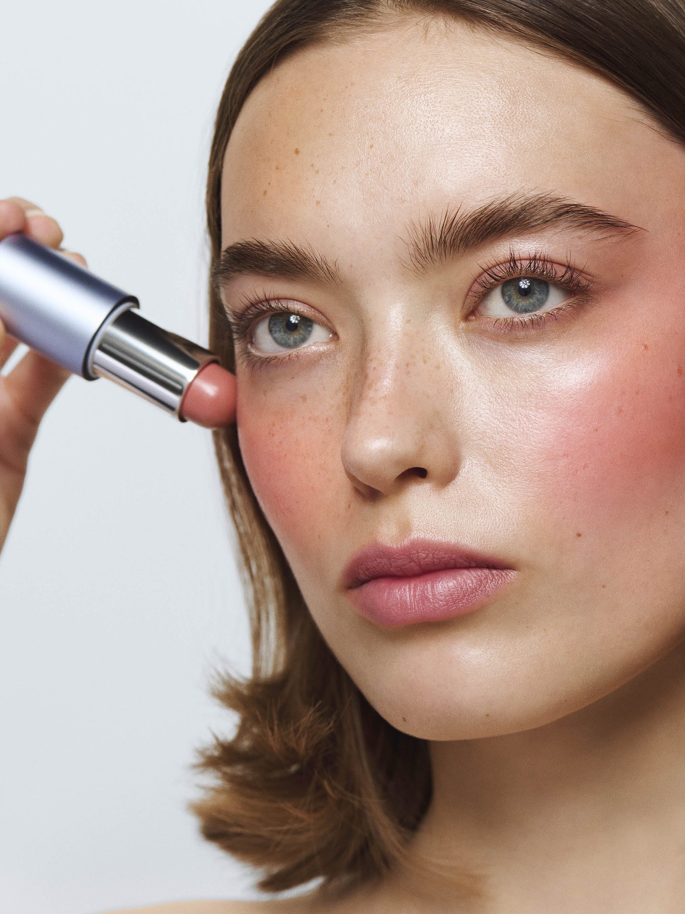 Kloppfen Sie das Produkt mit den Fingern oder einem Pinsel auf die Wangenäpfel. Verblenden Sie es nach außen in kleinen, kreisenden Bewegungen. Die Farbe kann von einem dezenten Glow bis zu einer intensiveren Nuance aufgebaut werden. Arbeiten Sie in Richtung Schläfe für einen gelifteten Ausdruck. Das Produkt ist hochpigmentiert, daher jeweils nur eine kleine Menge verwenden. Die leichte Textur macht das Verblenden einfach. Aurora ist ein warmer Rosaton.