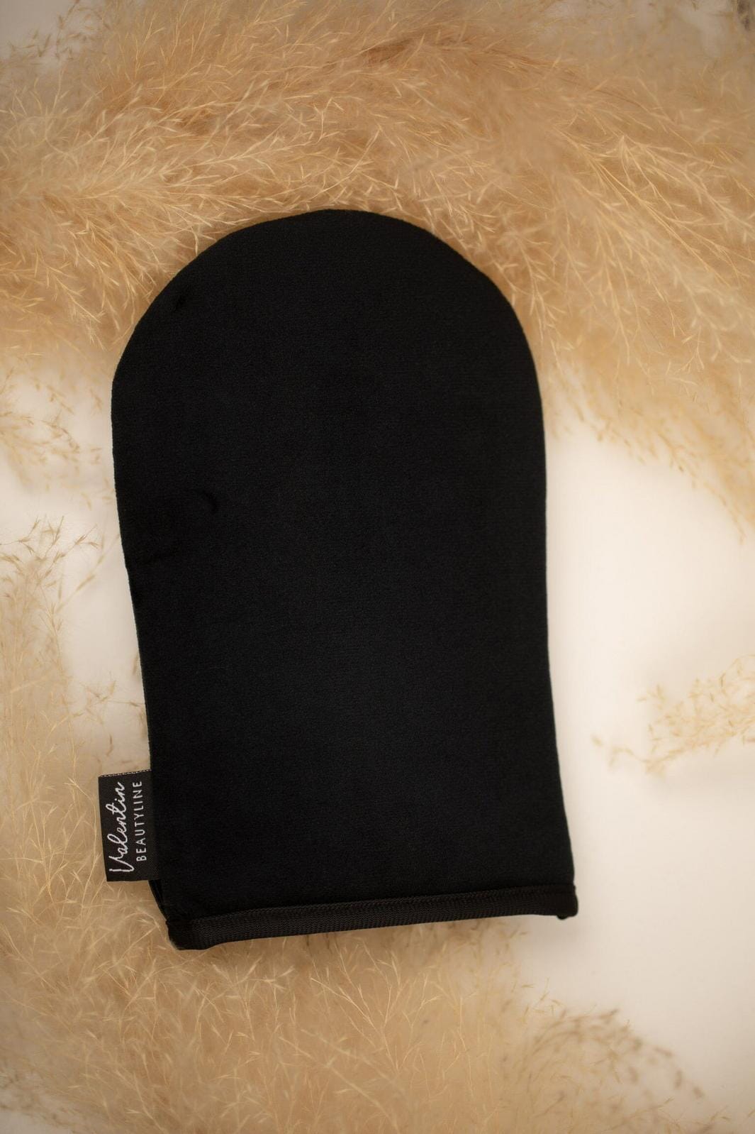 Schwarzer Auftragshandschuh von Valentin Beautyline für Selbstbräuner und Bronzer. Der Handschuh schützt die Hände vor Verfärbungen und hilft, das Produkt gleichmäßig zu verteilen.
