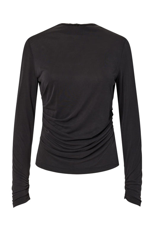 Schwarzes langärmeliges Oberteil von Y.A.S mit rundem Halsausschnitt. Das Oberteil hat Rüschendetails vorne und eine reguläre Passform, die es angenehm zu tragen macht.