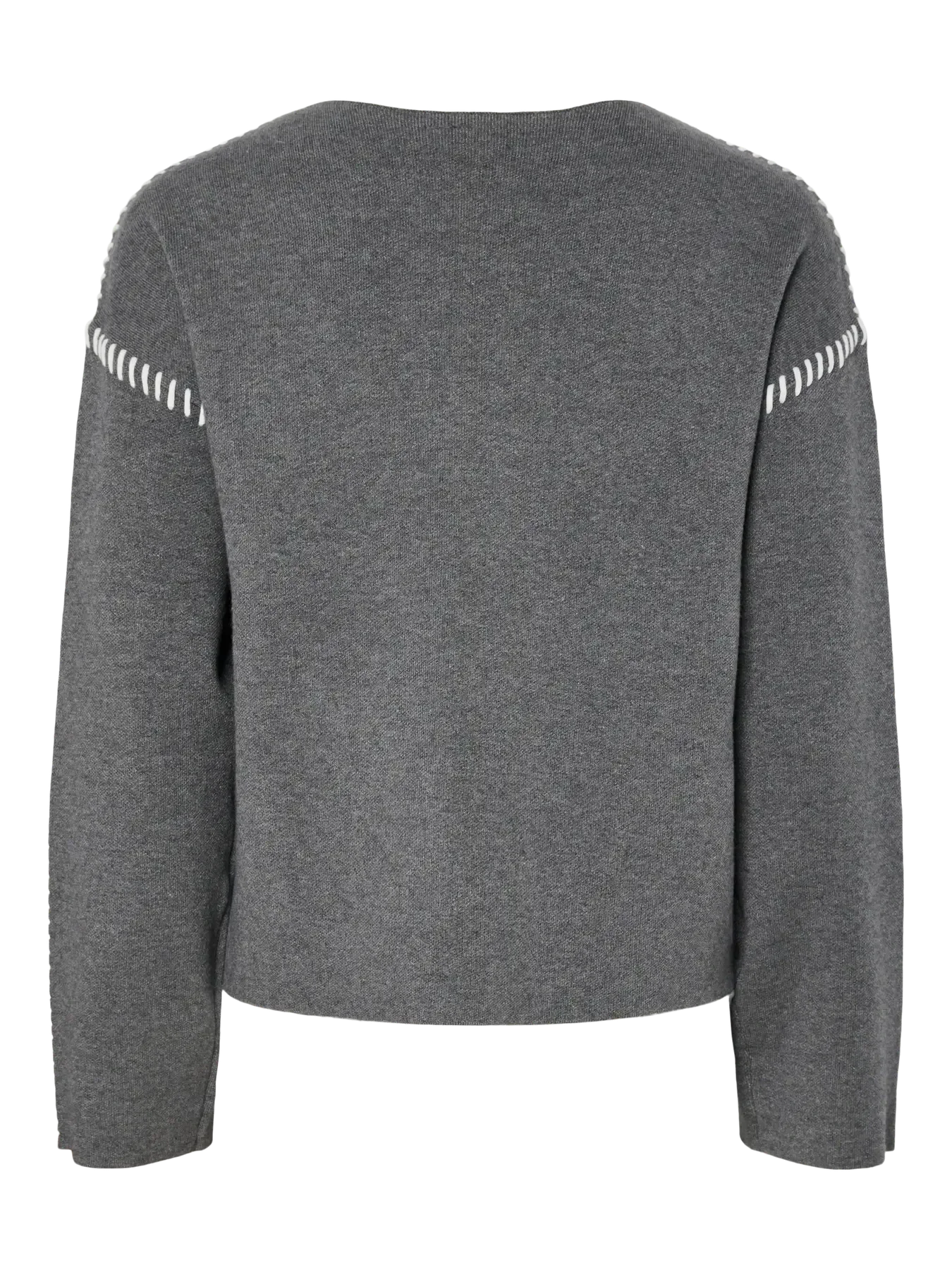 Y.A.S Yasstitcha Ls Knit Pullover Farbe: 4841745 Medium Grey Melange Birch Stitches