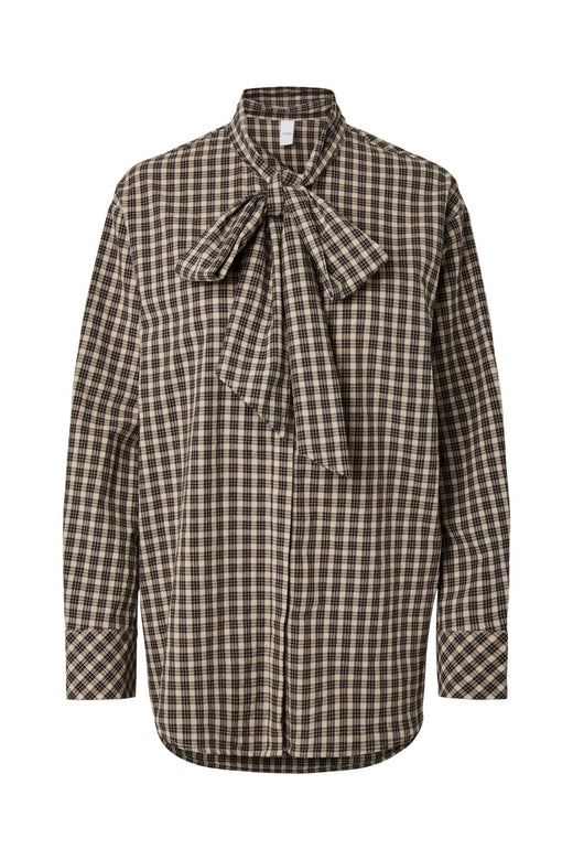 Langes Hemd von YAS, aus 100 % Baumwolle mit einem karierten Muster in braunen und beigen Nuancen.
